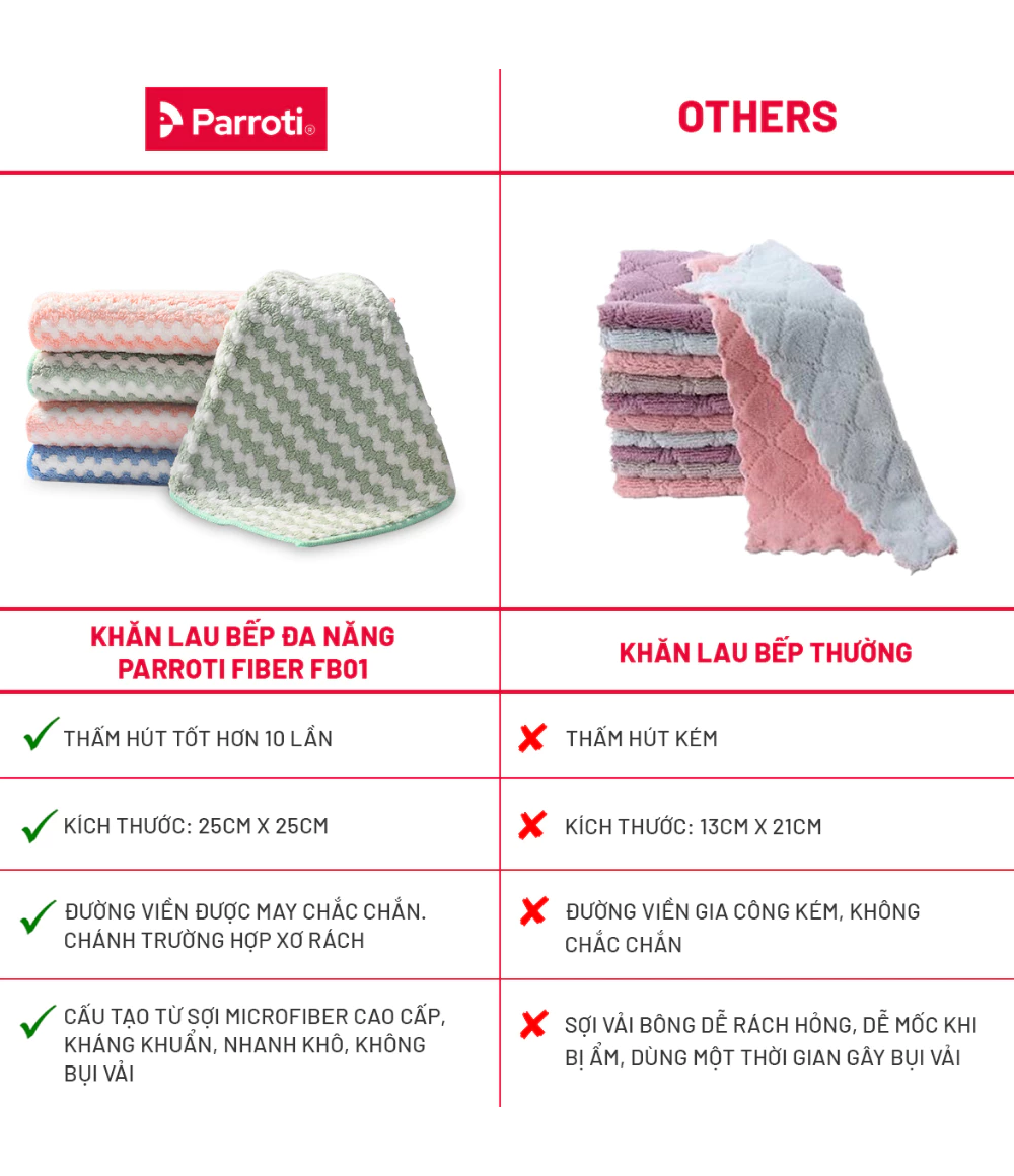 – Tên sản phẩm: Khăn lau bếp đa năng Parroti Fiber