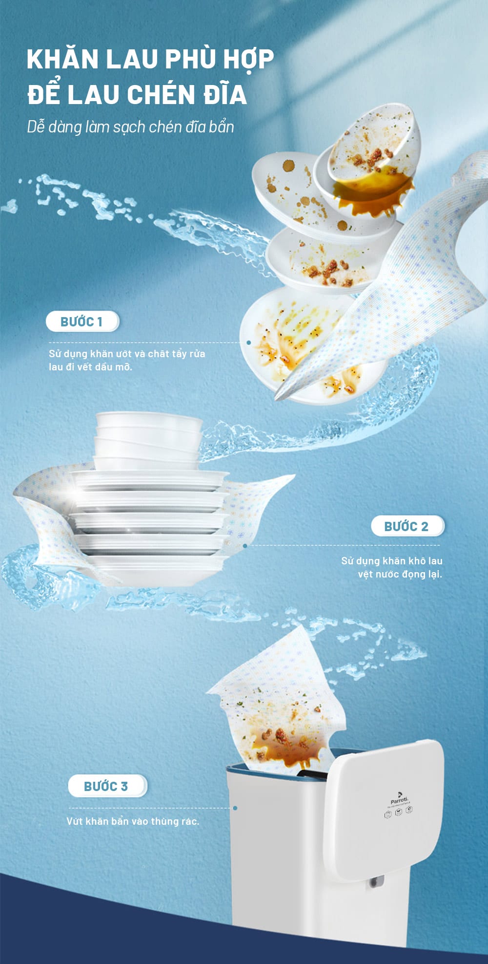 – Bước 3: Khăn có thể dễ dàng giặt sạch để tái sử dụng nếu cần thiết.