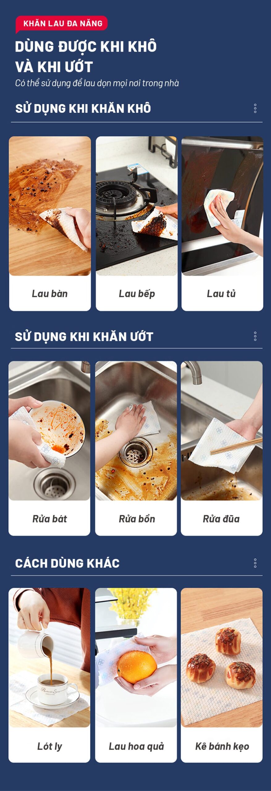 – Sử dụng cho nhiều trường hợp khác như bát đũa, lau tay