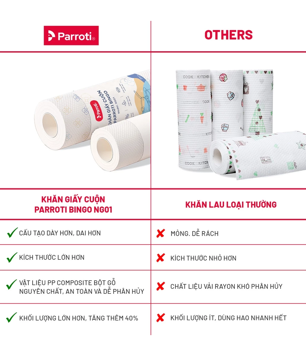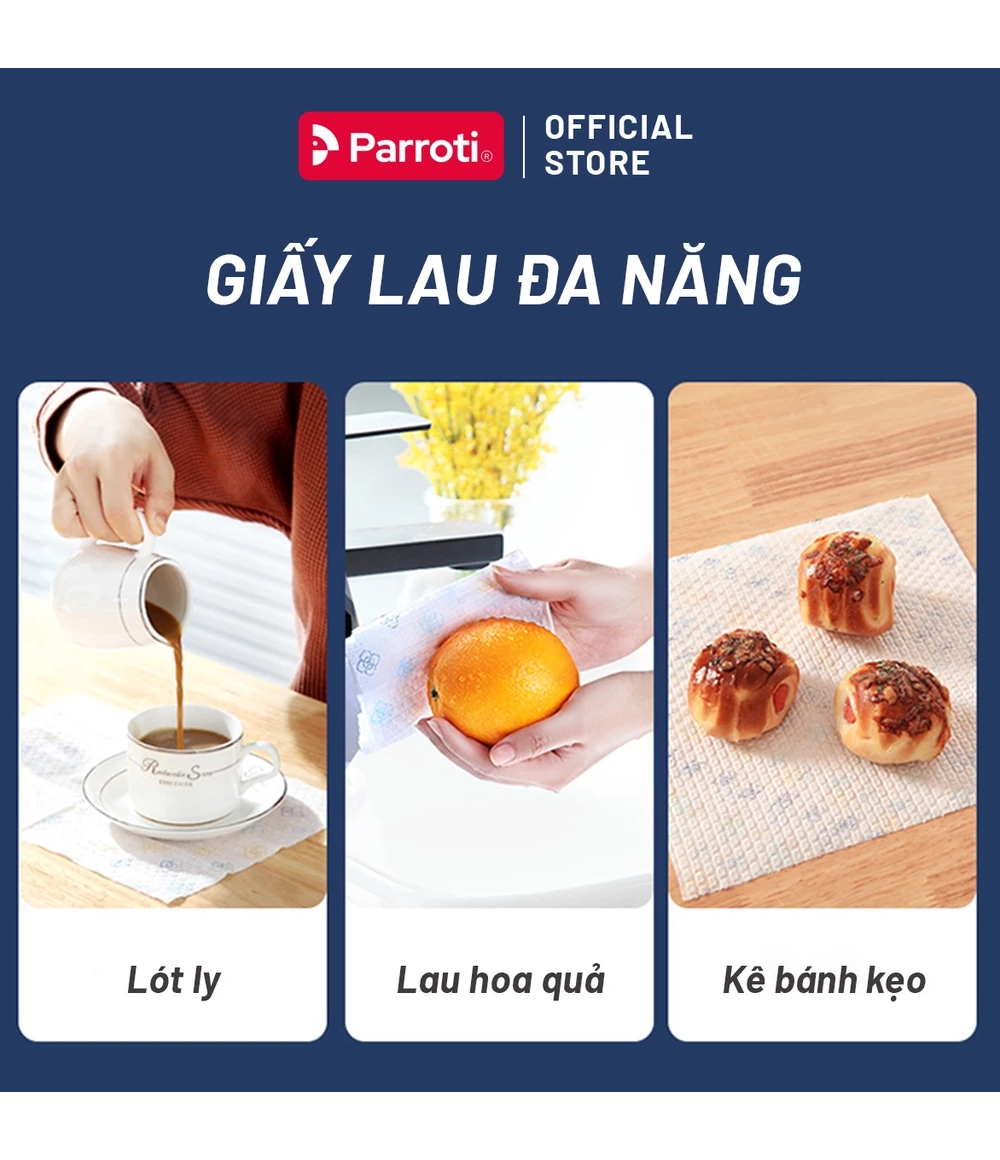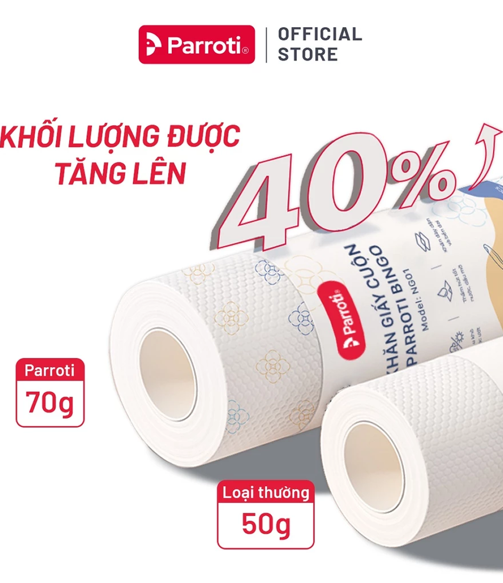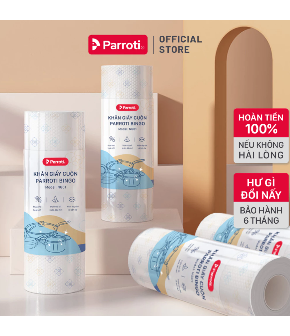 – Tên sản phẩm: Khăn giấy cuộn đa năng, lau bếp, lau kính, lau chén bát, lau tay – Parroti Bingo NG01