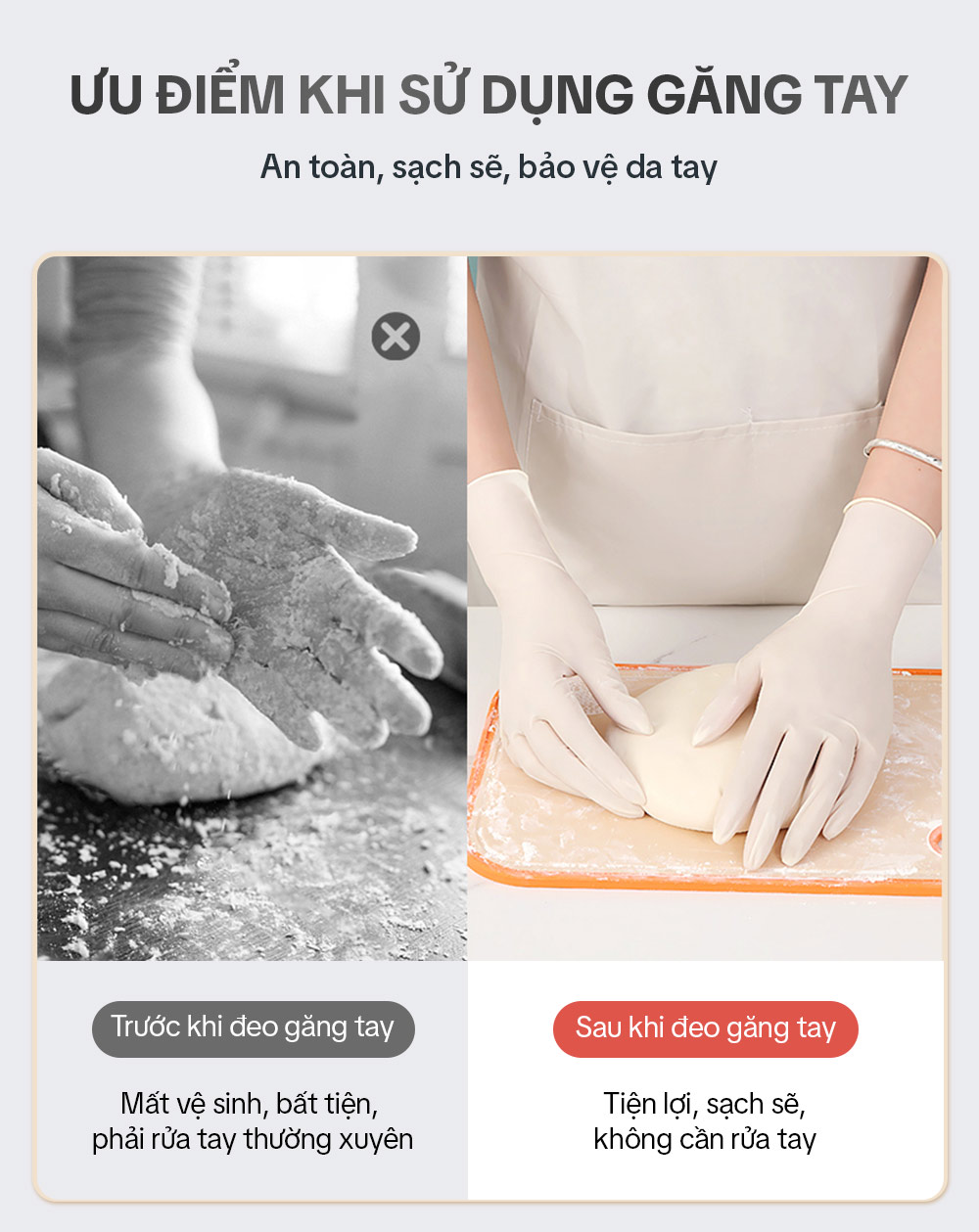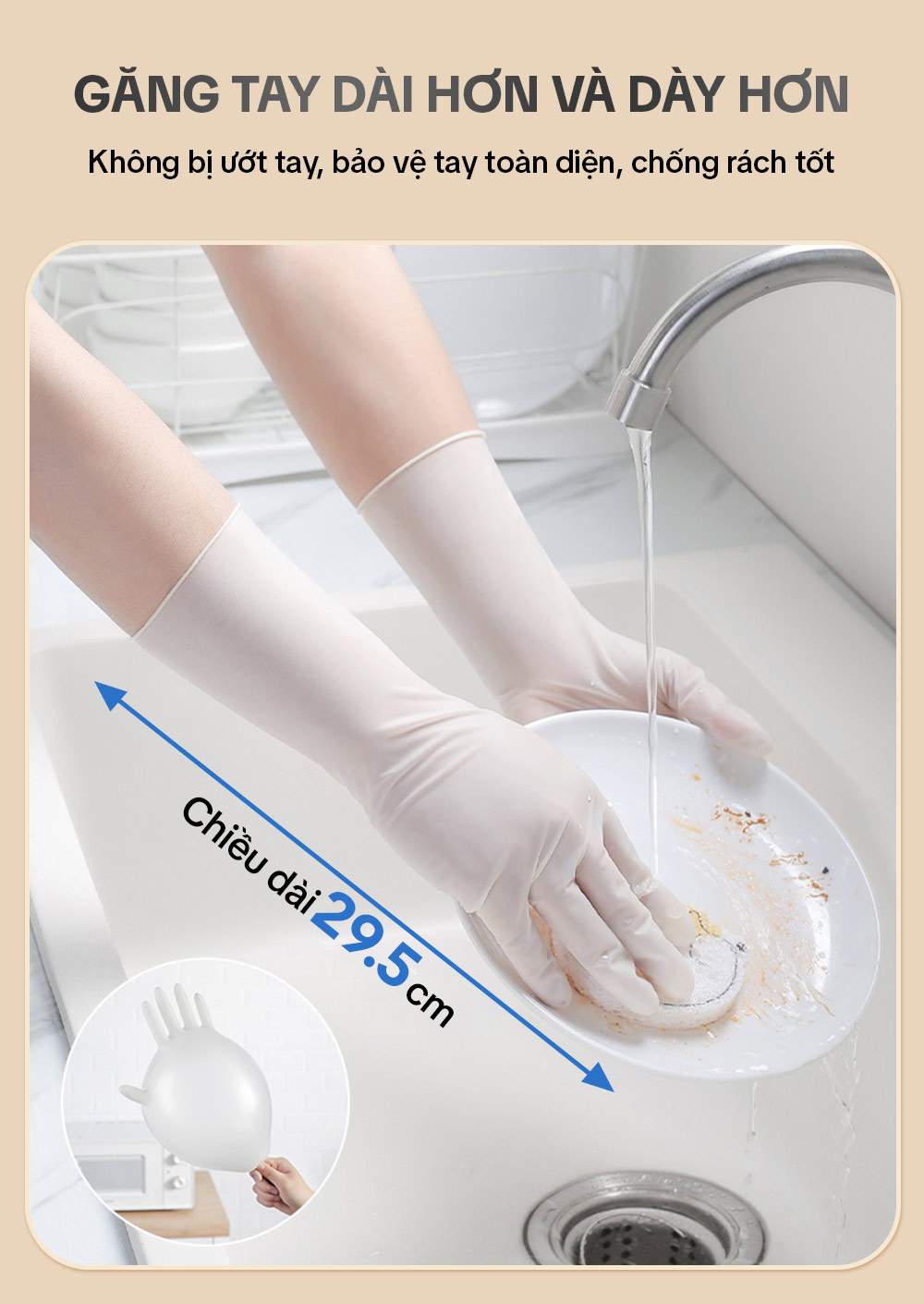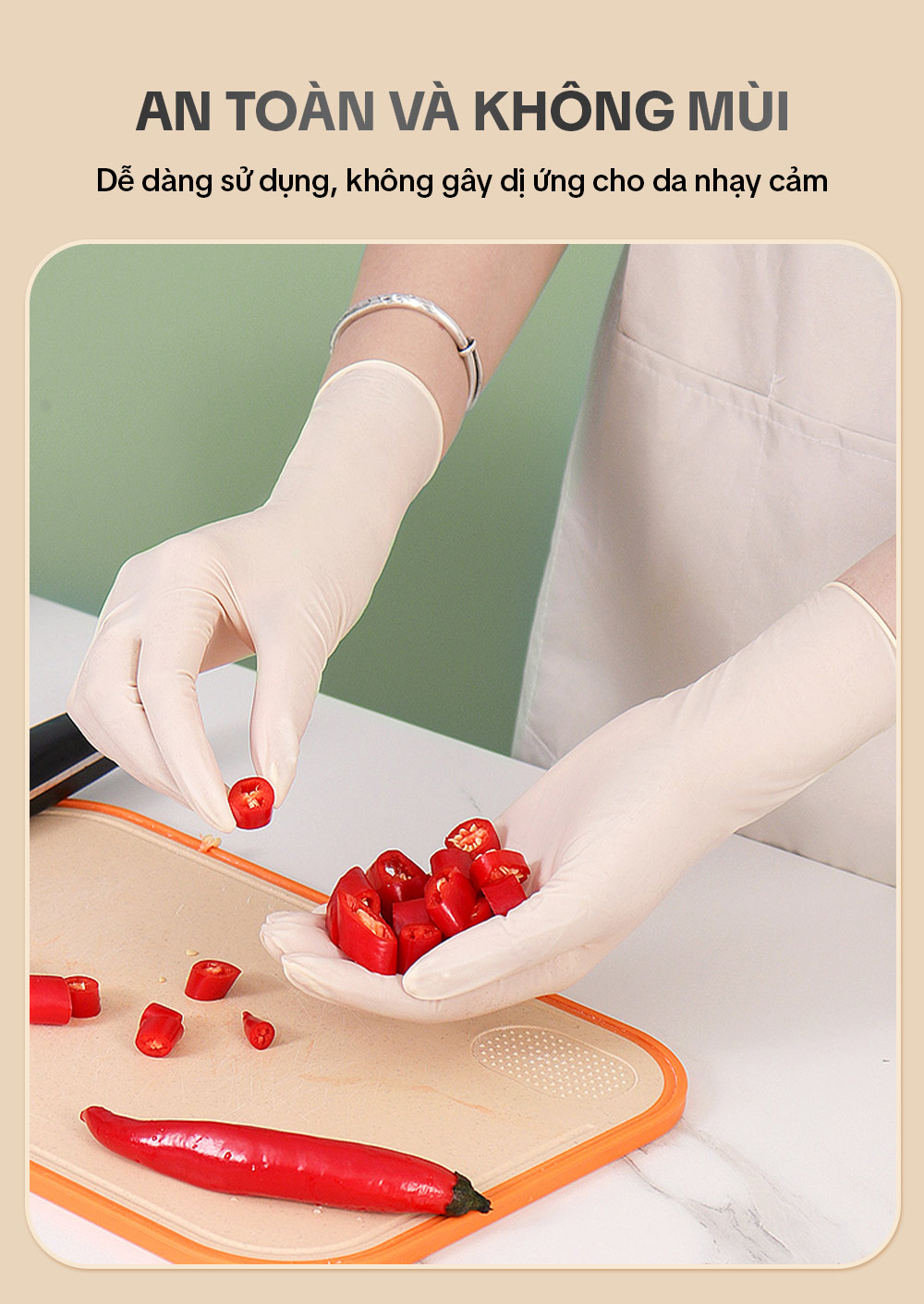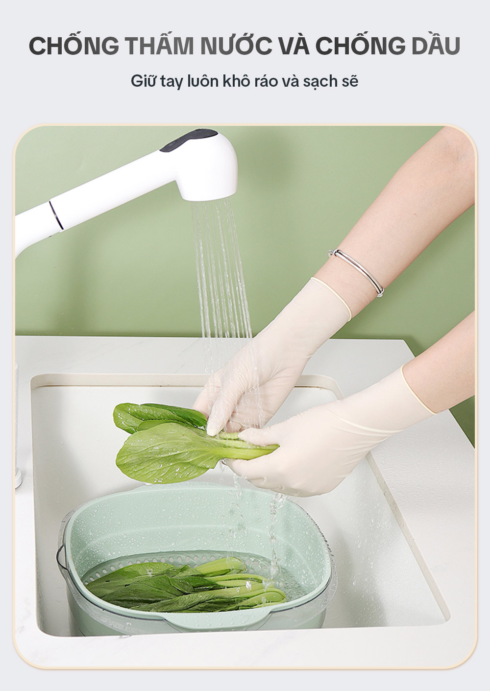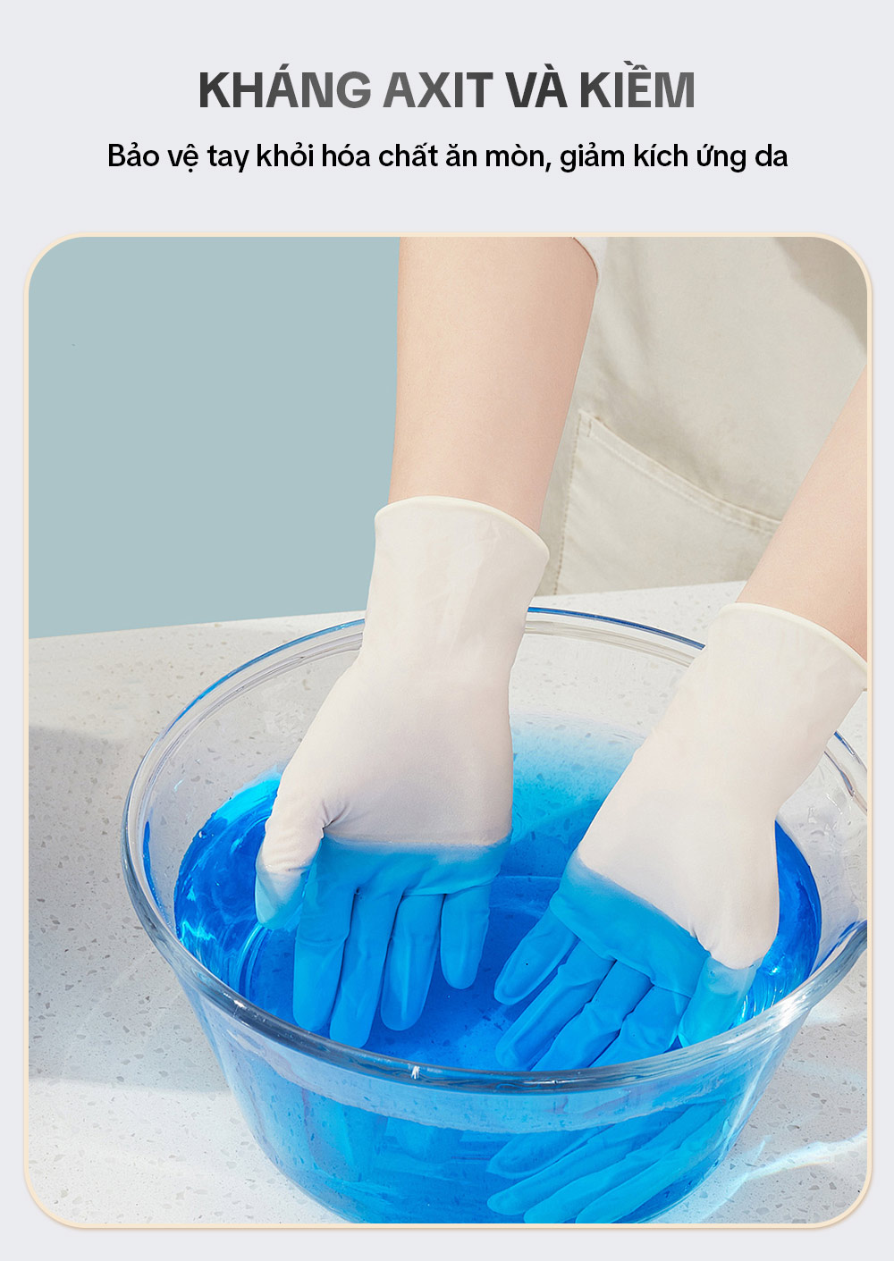 – Bước 1: Đeo bao tay khi vệ sinh nhà cửa, giặt giũ hay nấu nướng