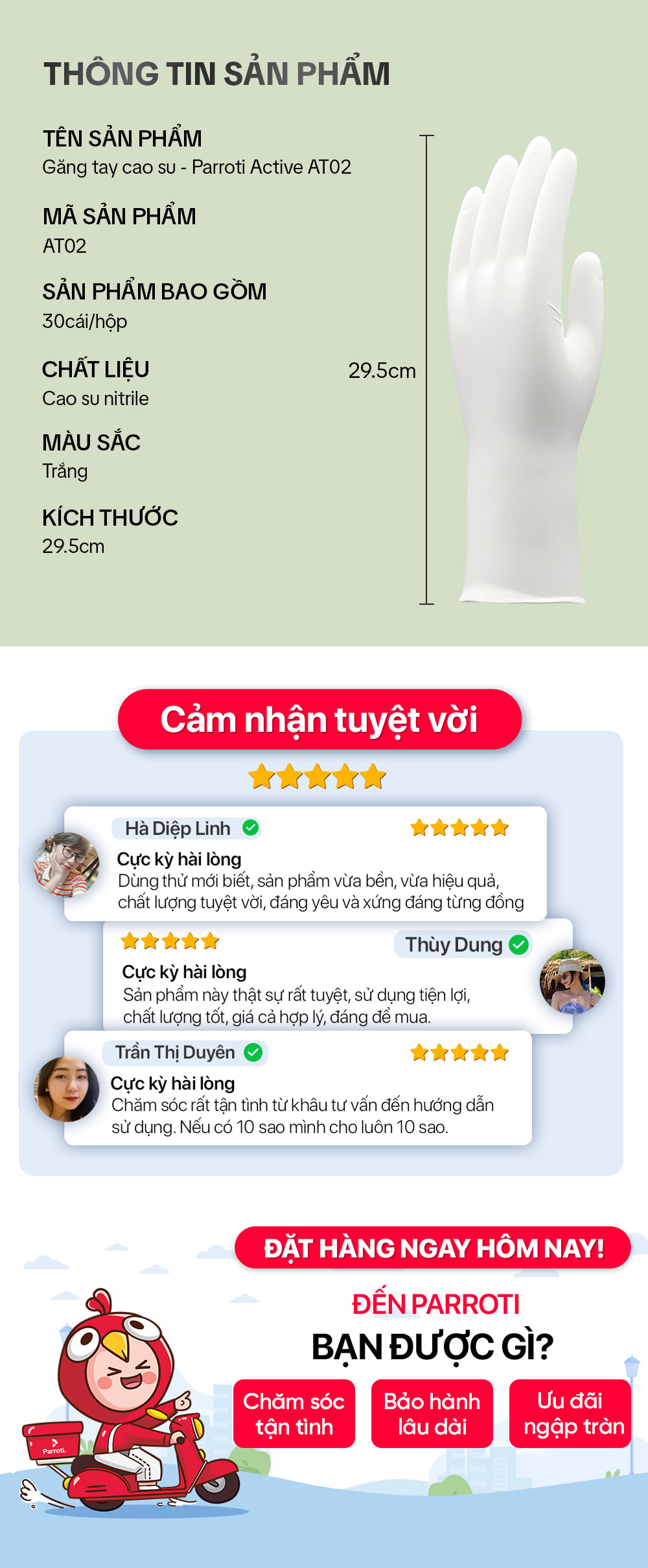Parroti đảm bảo sản phẩm đúng như mô tả và hình ảnh