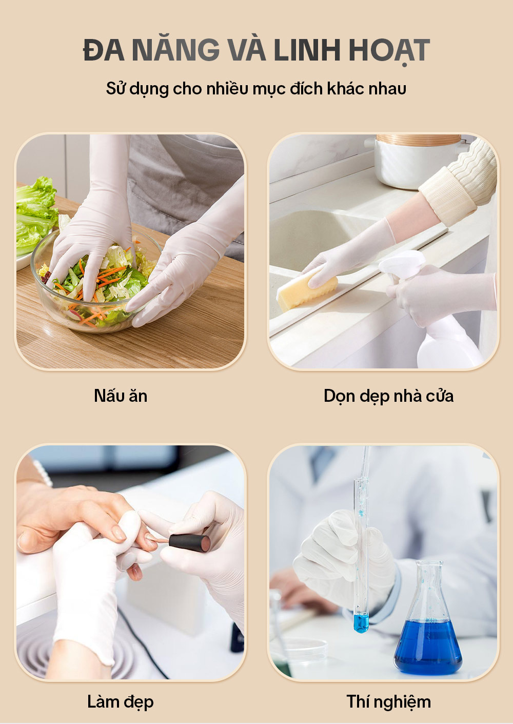 – Làm tư vật liệu Nitrile siêu dai, siêu bền, chống trơn trượt