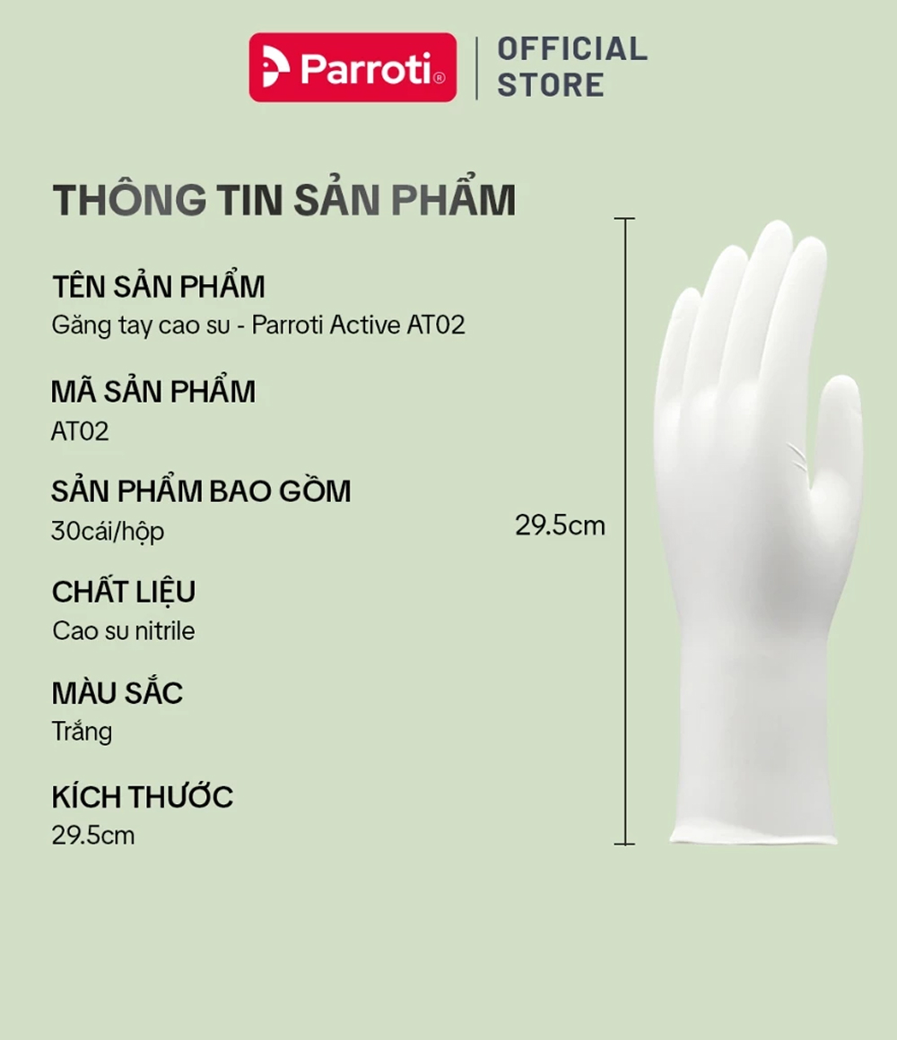 Găng tay cao su nitrile siêu dai, không mùi Parroti Active AT02