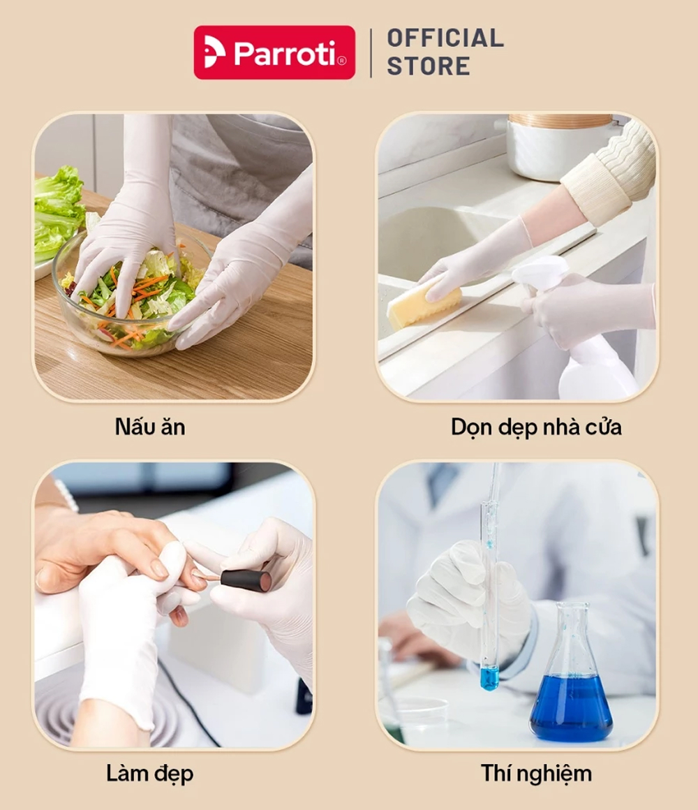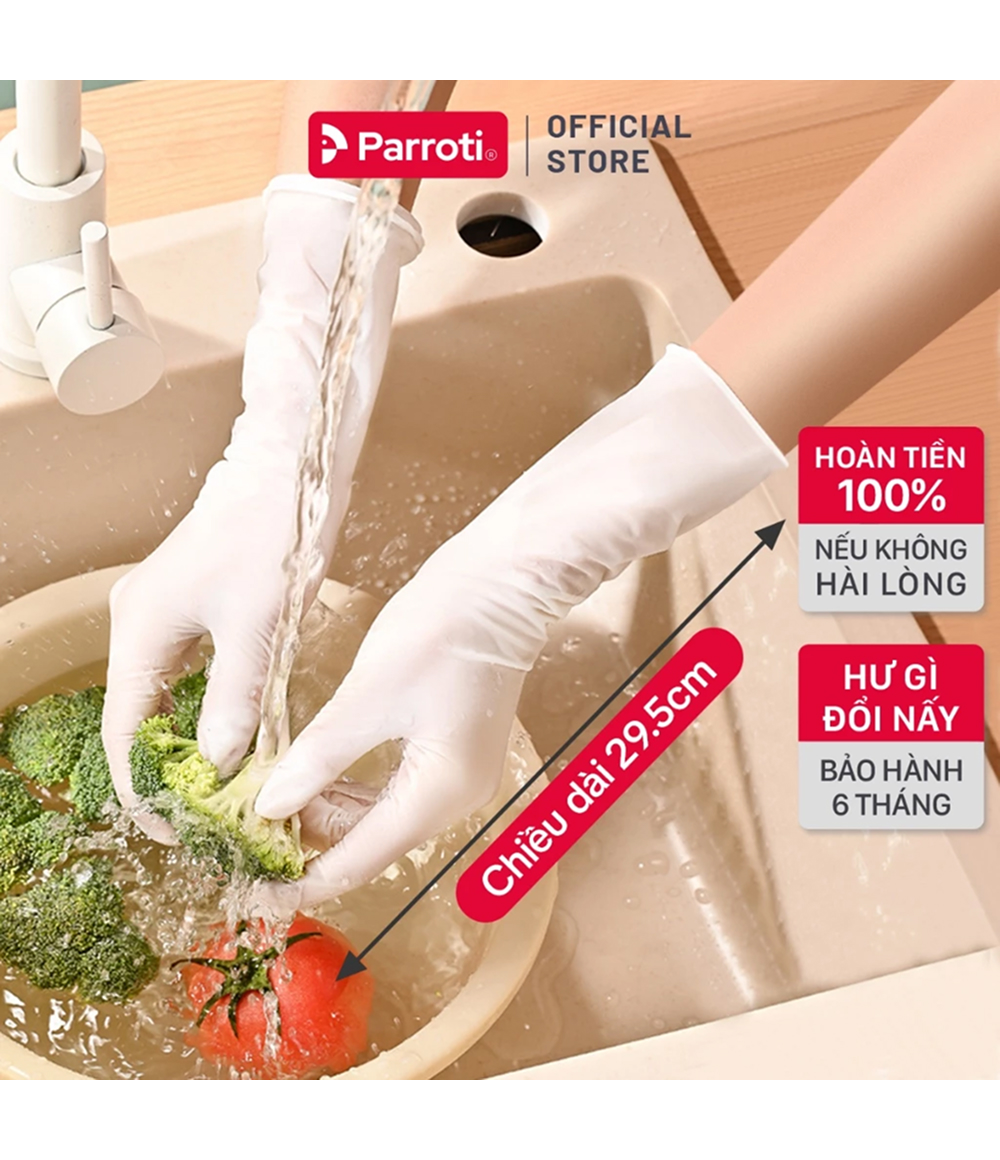 – Đa năng: găng tay cao su Parroti dùng để rửa chén, nấu ăn, giặt giũ hoặc vệ sinh nhà cửa