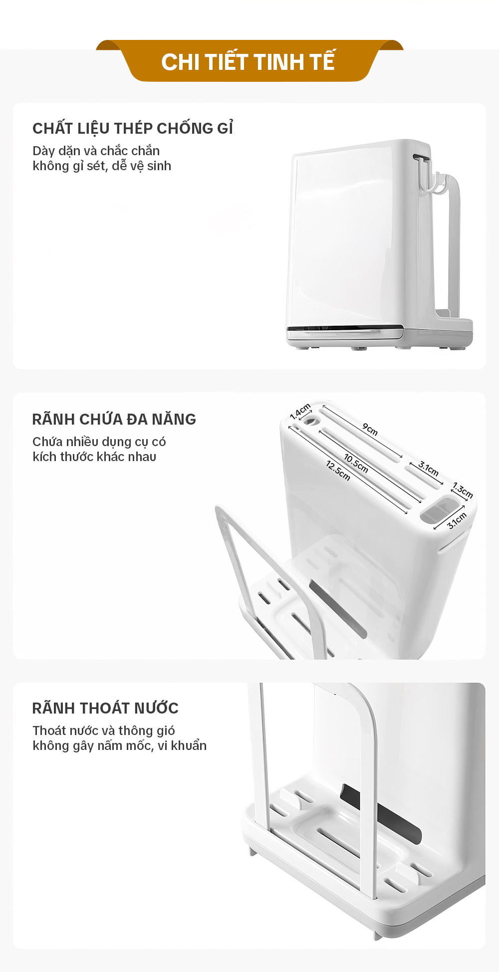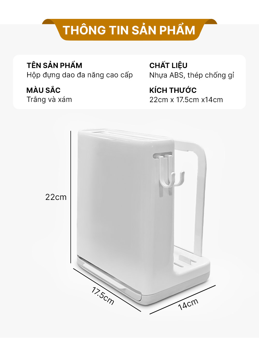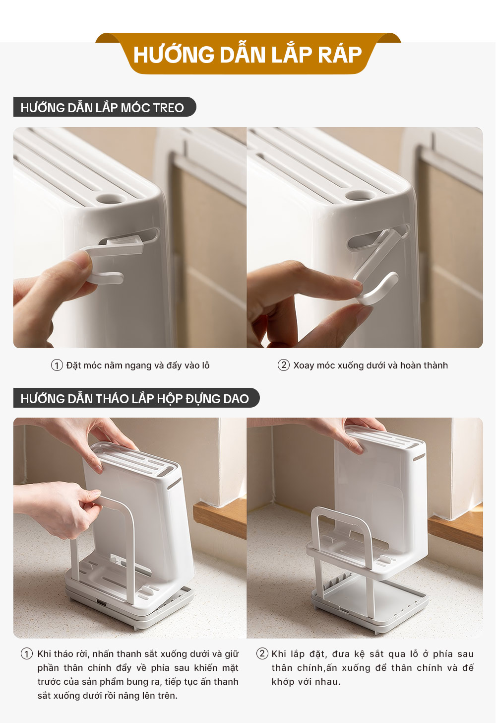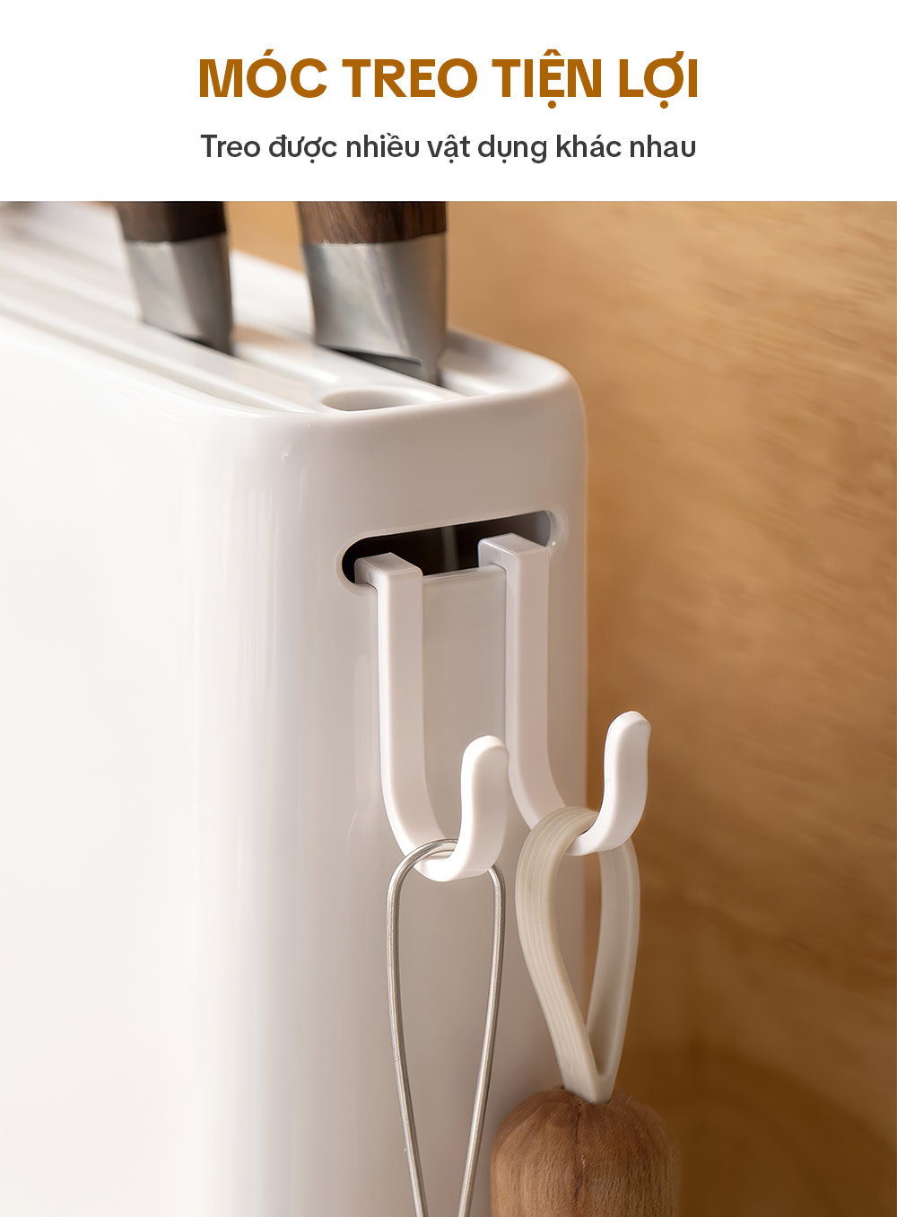 – Thành phần: 1 Hộp đựng dao, 2 móc treo, 1 miếng dán