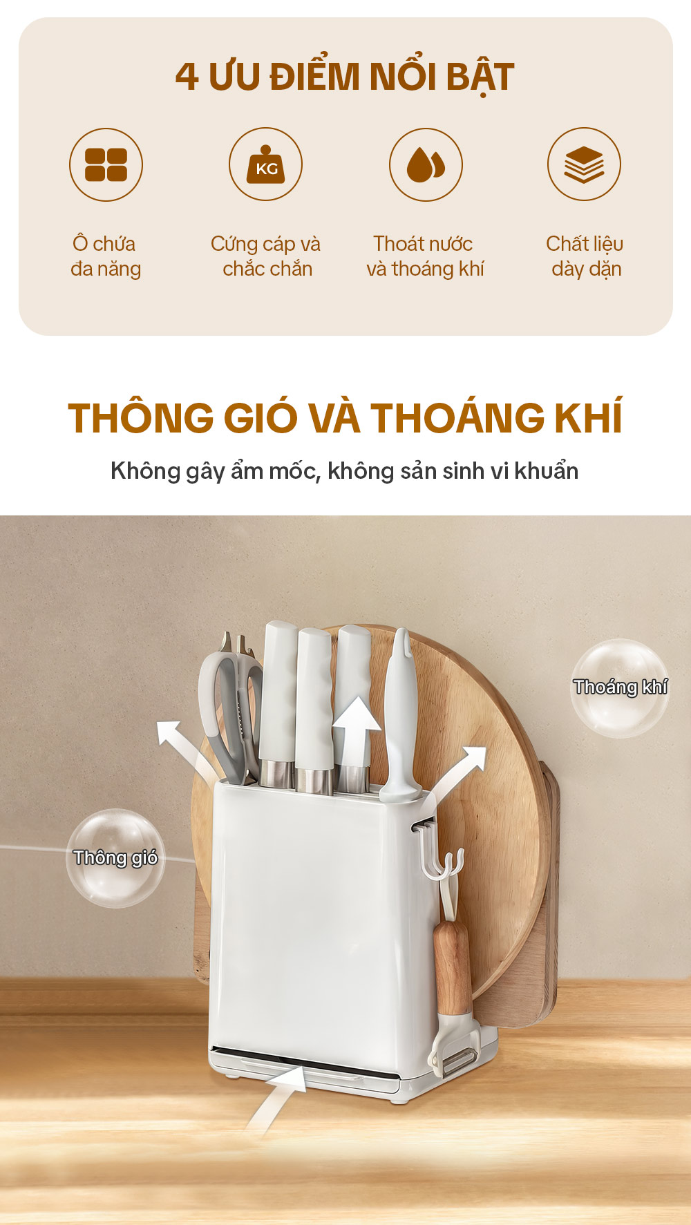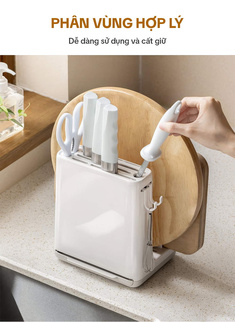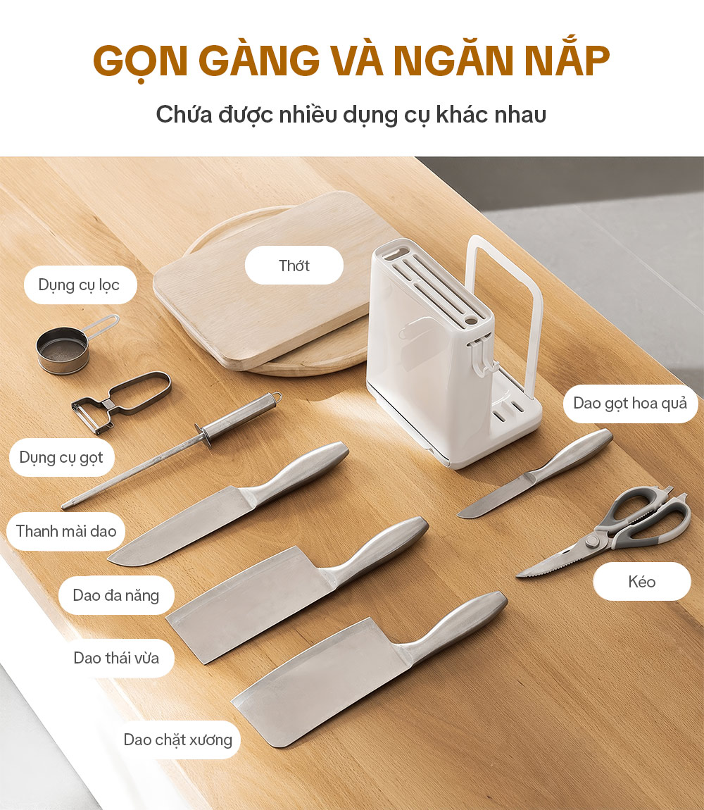 – Hộp đựng dao giúp bạn sắp xếp các loại dao một cách gọn gàng và dễ dàng sử dụng mỗi khi cần