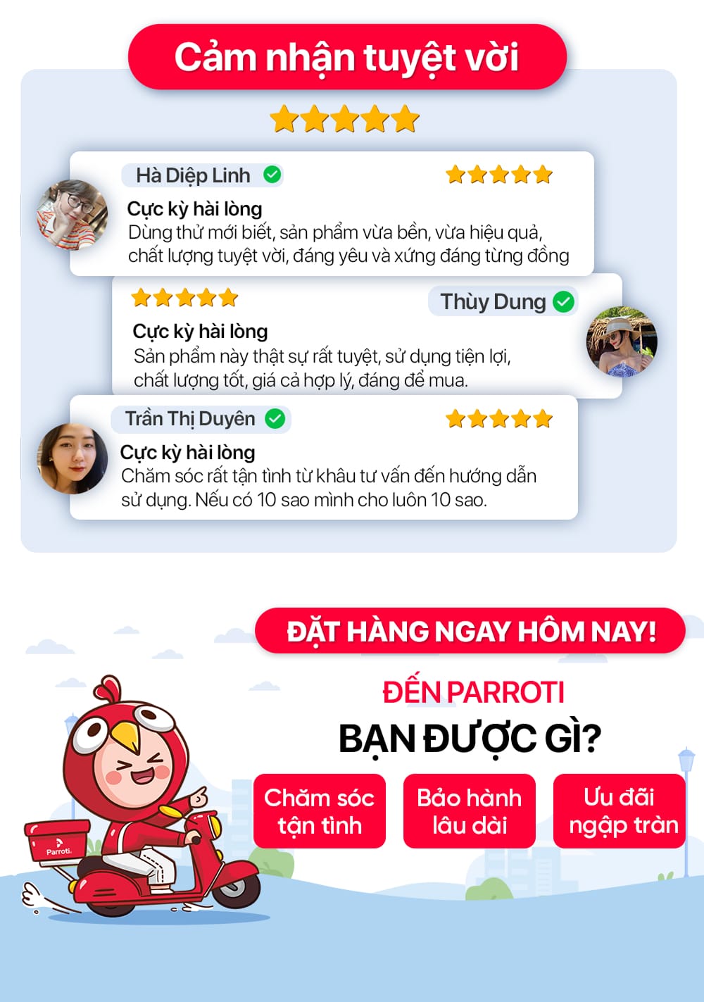 Parroti đảm bảo sản phẩm đúng như mô tả và hình ảnh