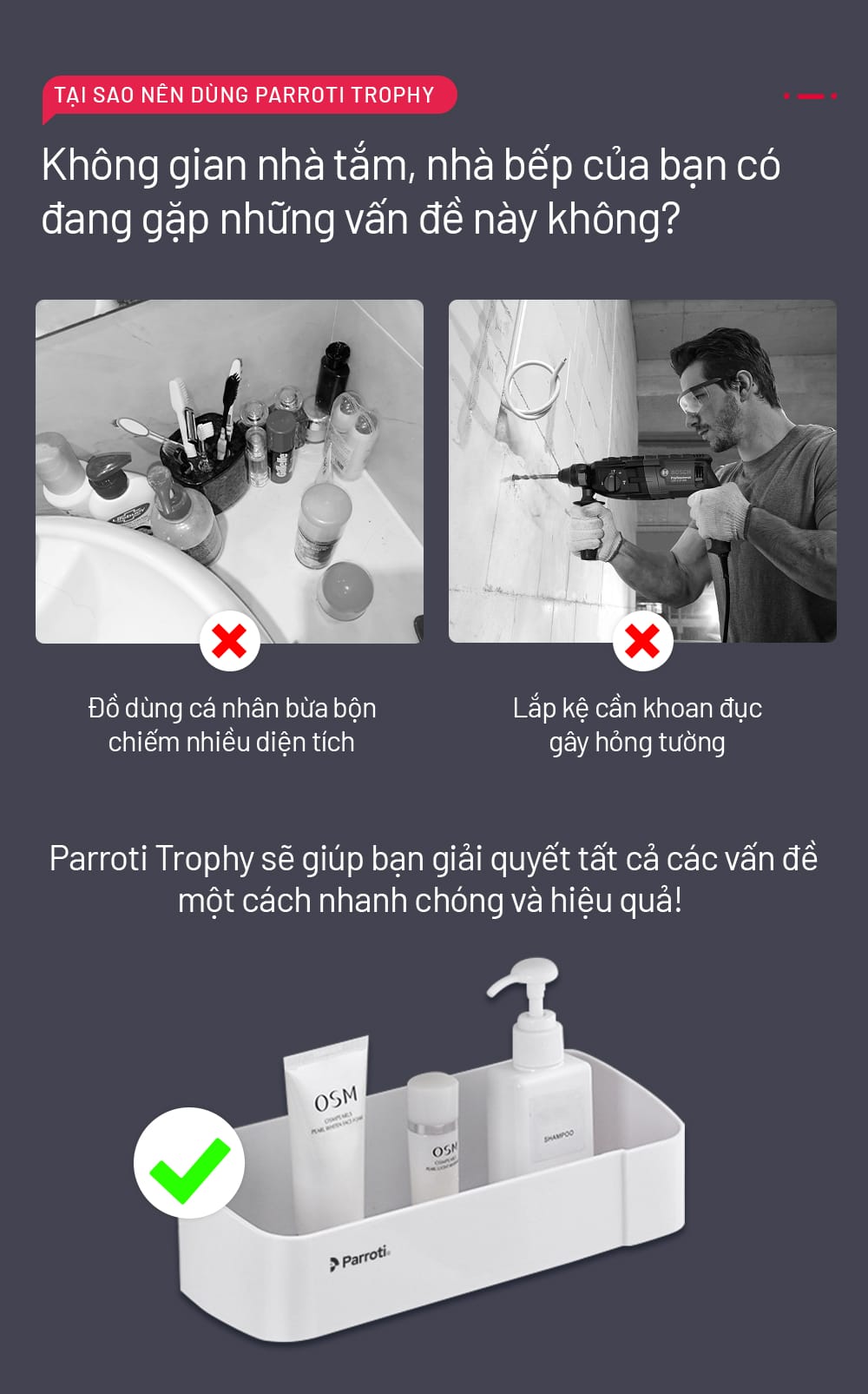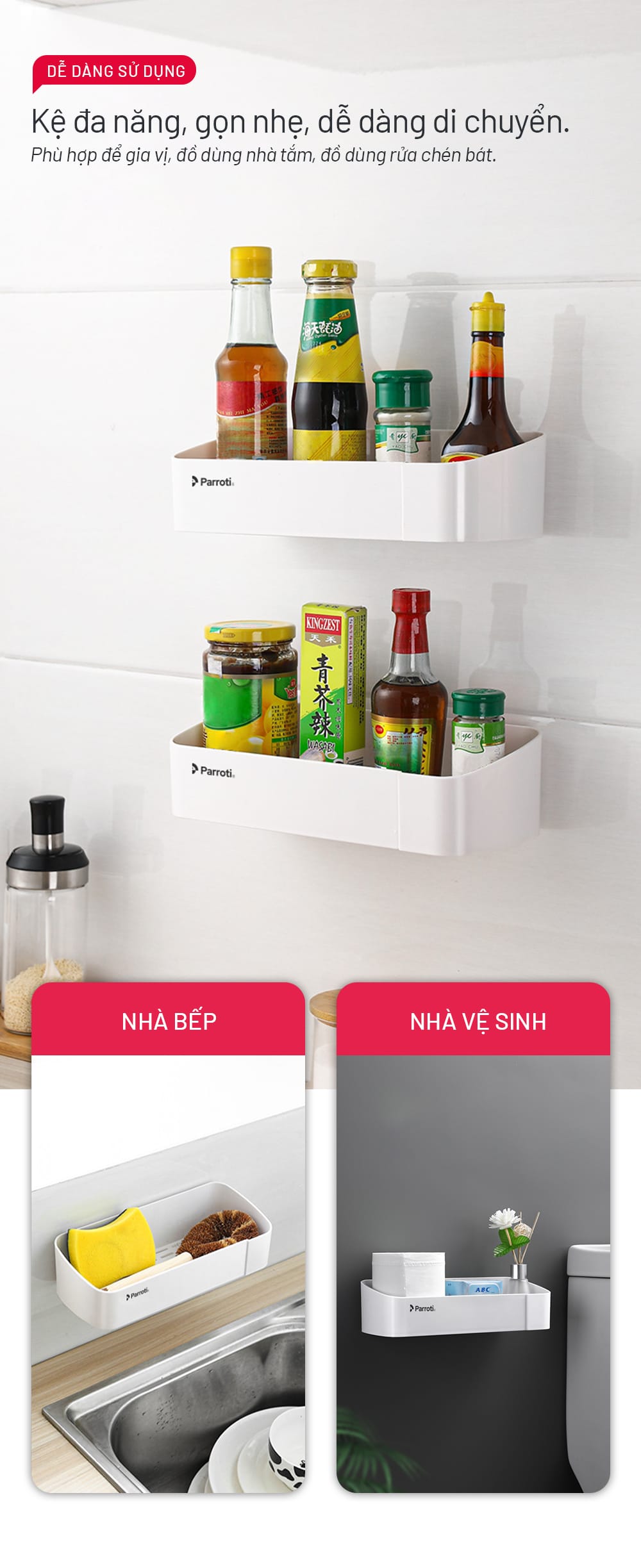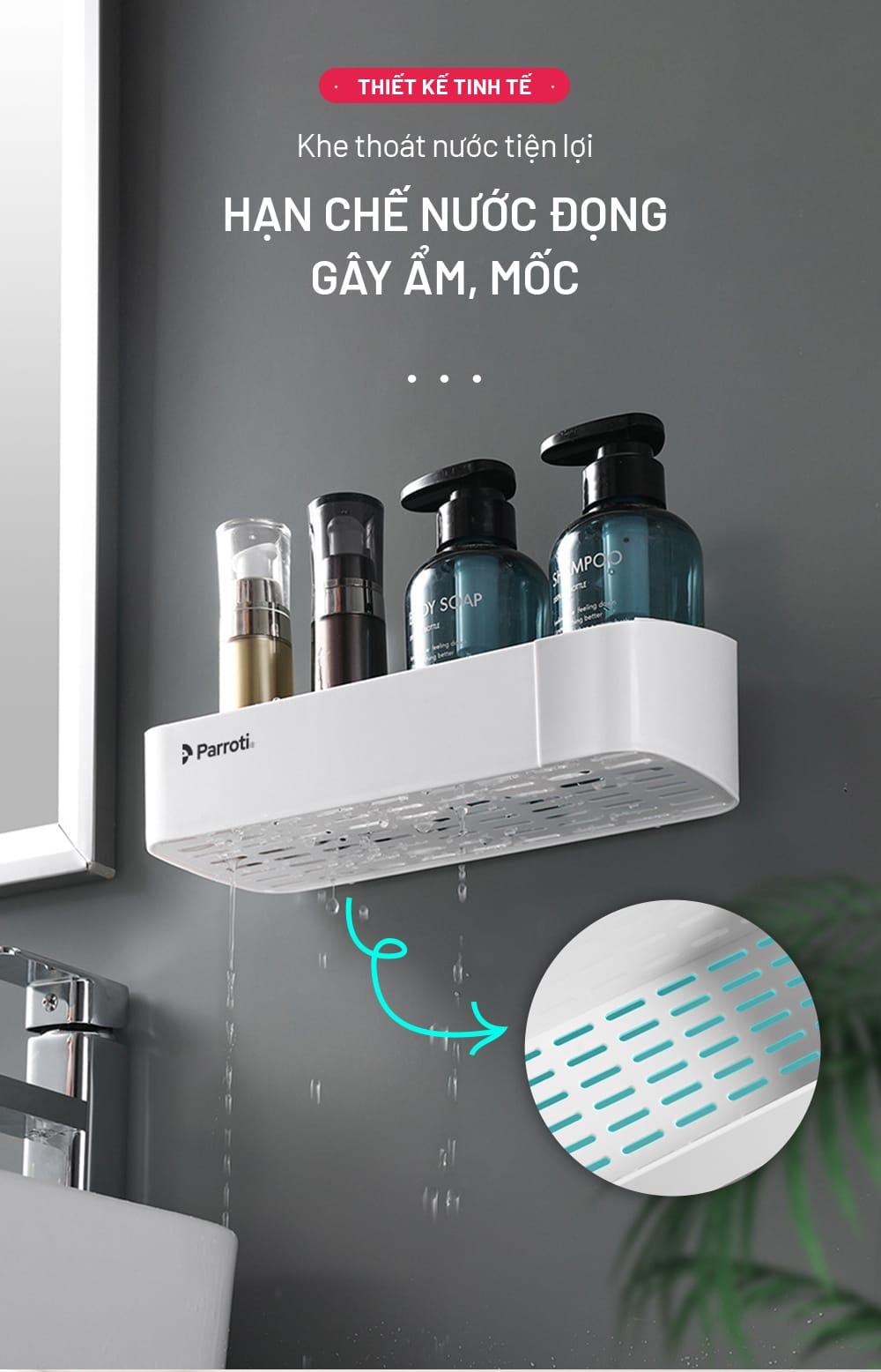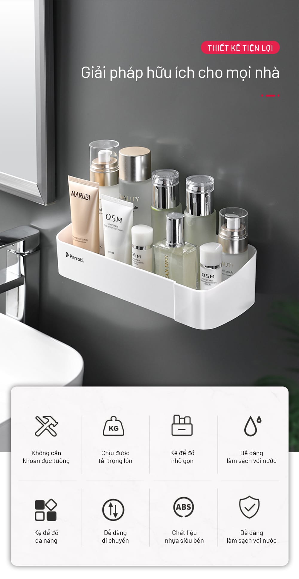 – Kệ để dầu gội, sữa tắm, dụng cụ vệ sinh, mỹ phẩm, …