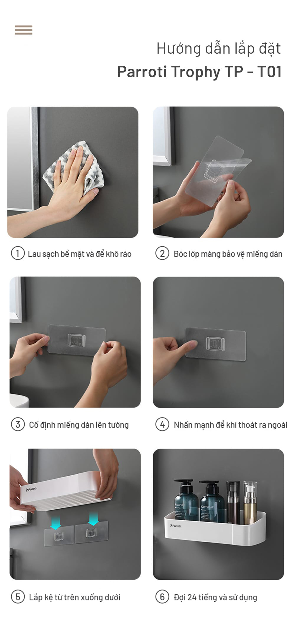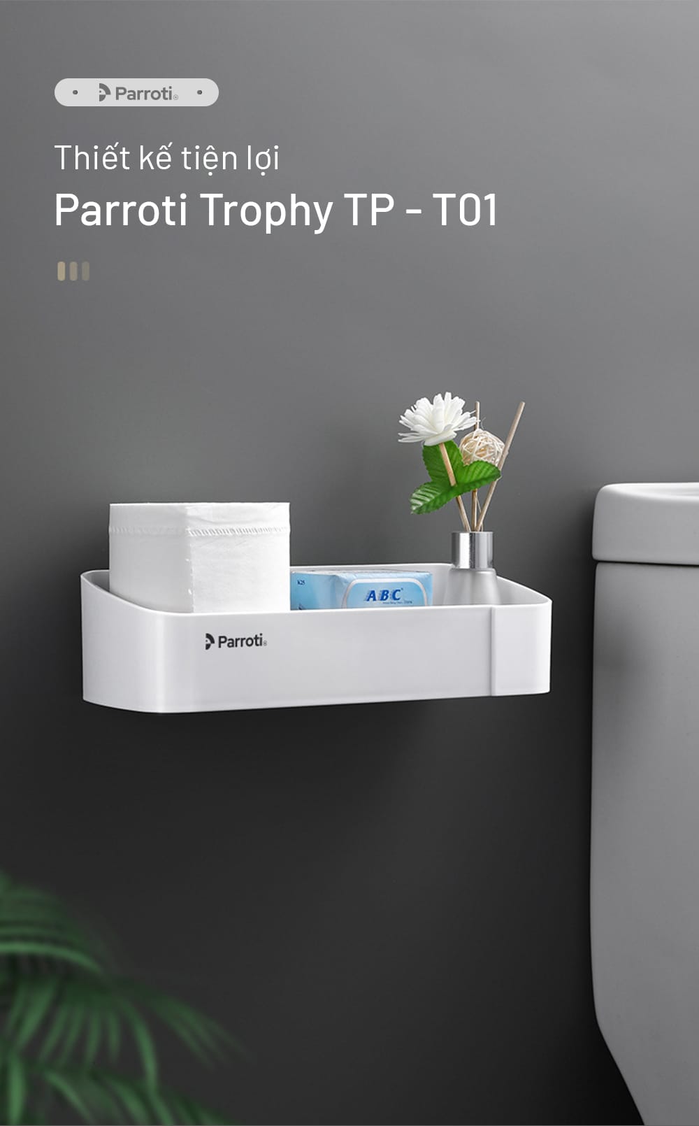 Kệ thẳng để đồ đa năng, dán tường Parroti Trophy TP-T01