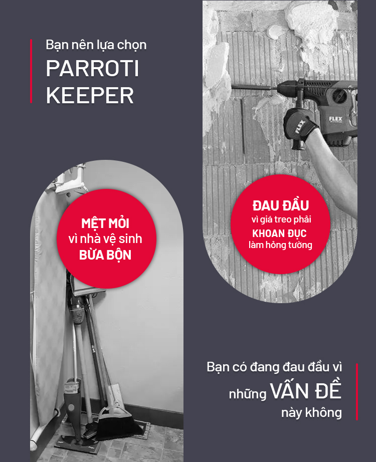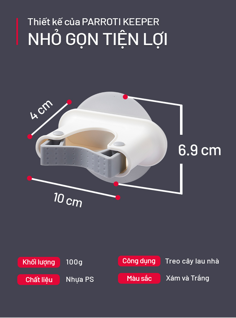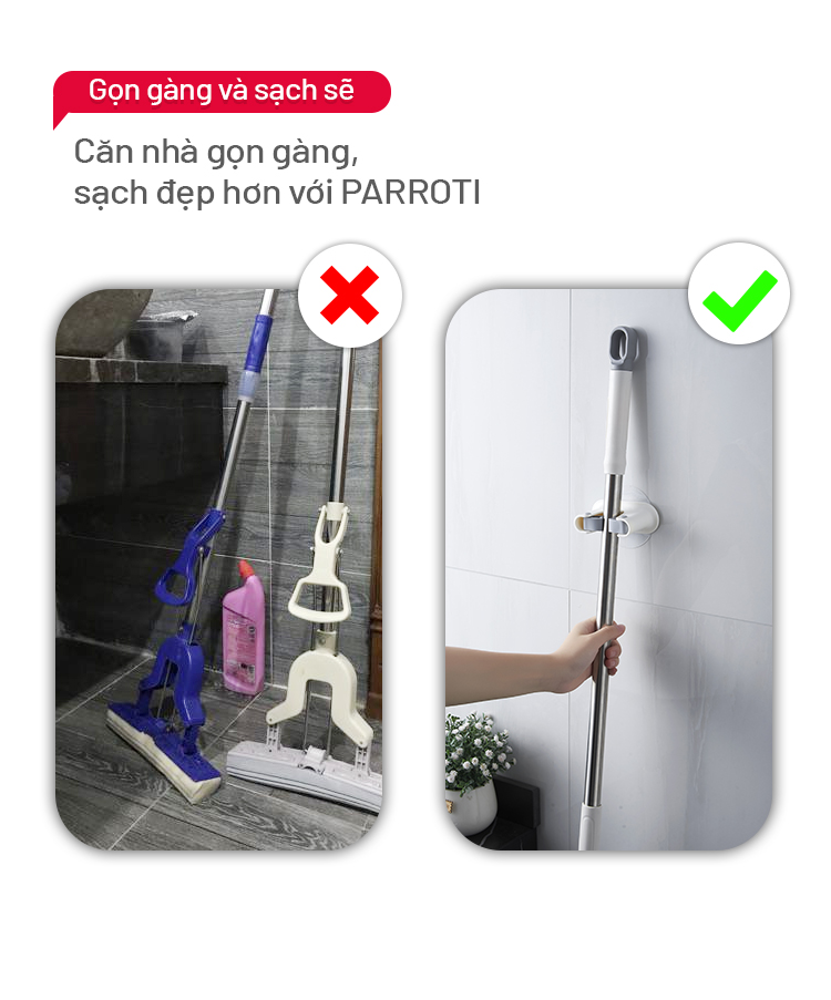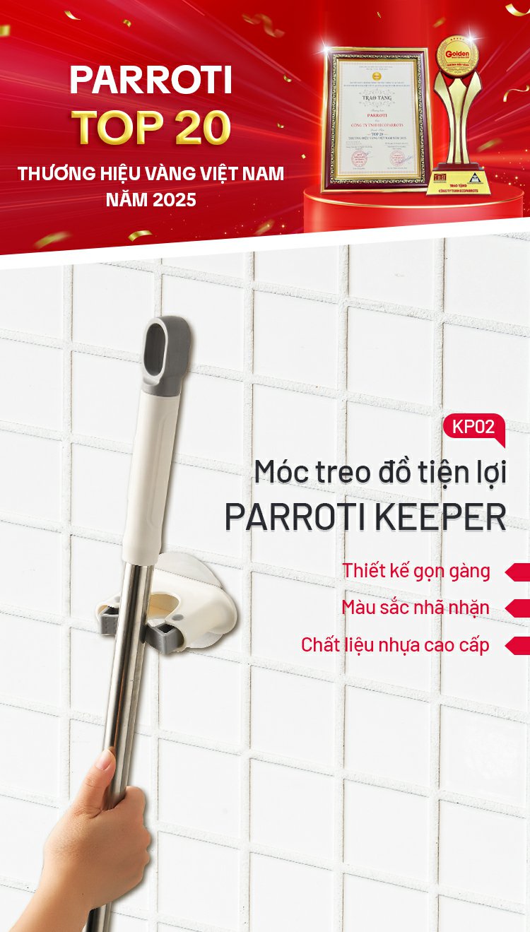 Móc treo cây lau nhà dán tường 2 trong 1 - Parroti Keeper KP02