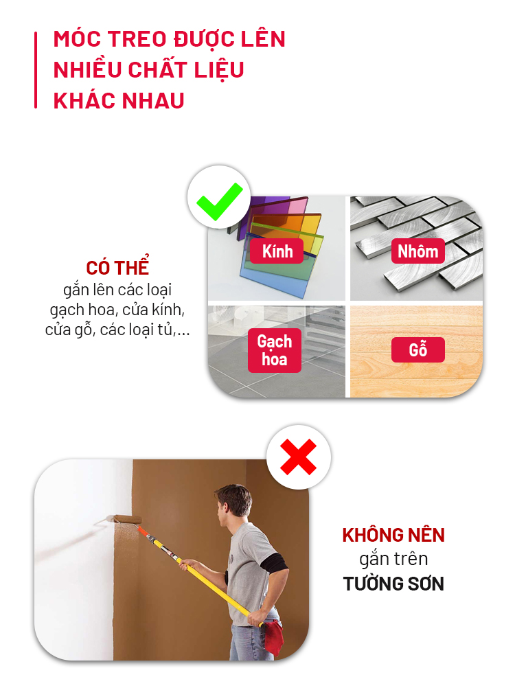 – Bước 3: Sử dụng móc treo sau khi dán 12 tiếng để đảm bảo miếng dán được chắc chắn nhất.