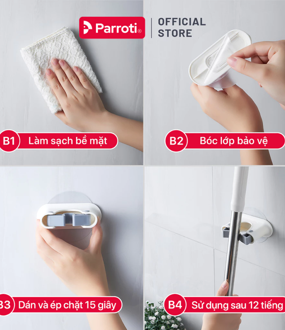 Móc treo cây lau nhà dán tường 2 trong 1 - Parroti Keeper KP02