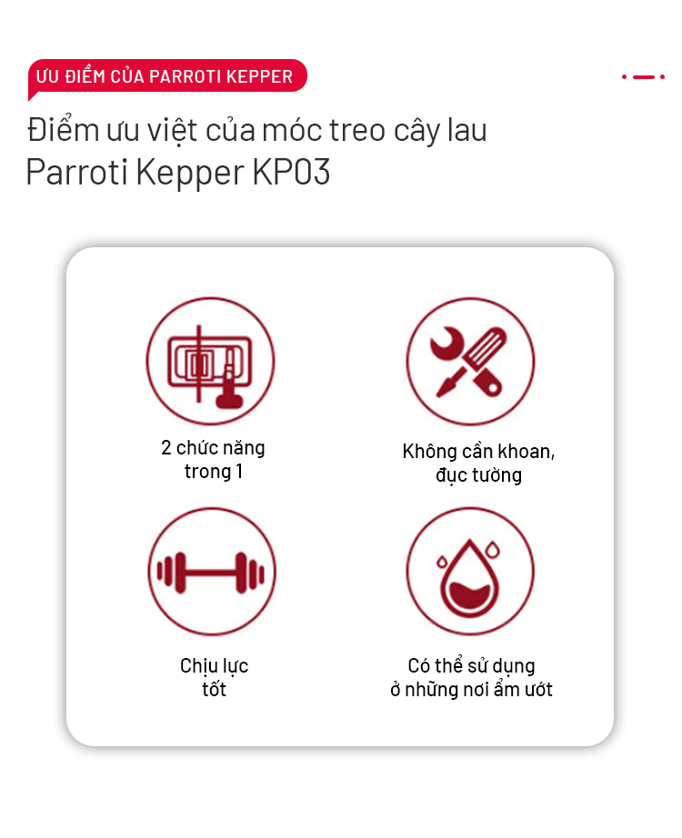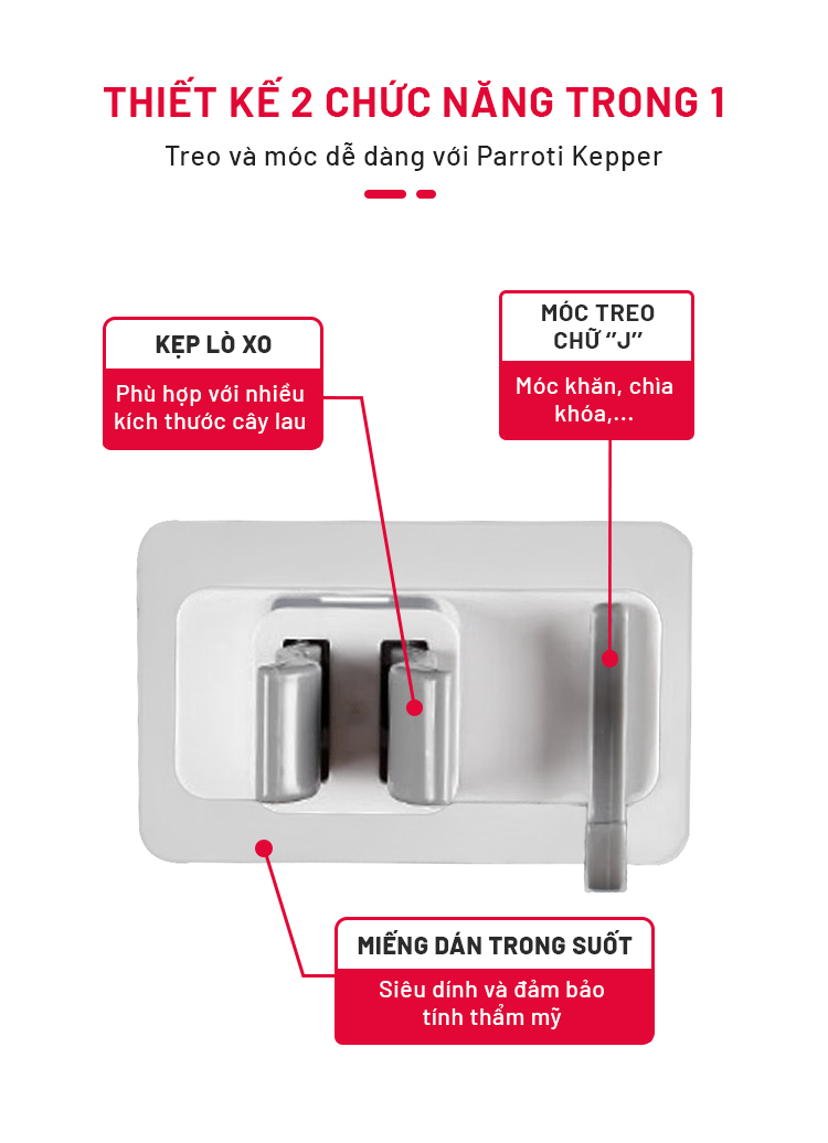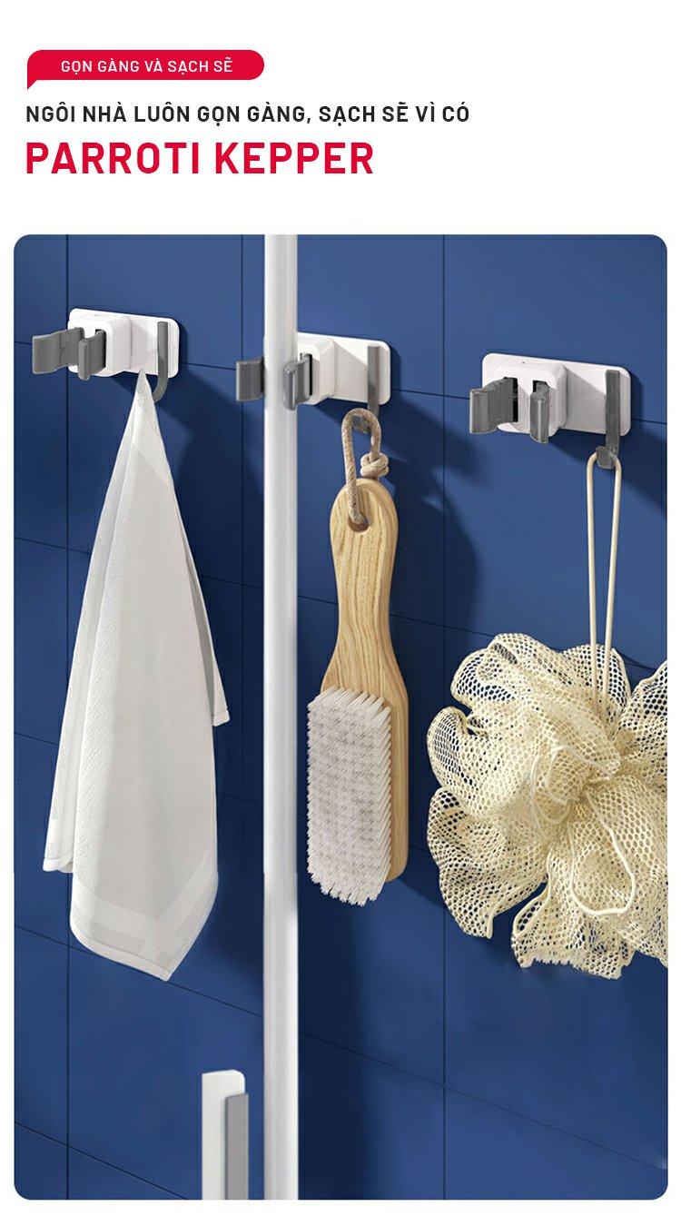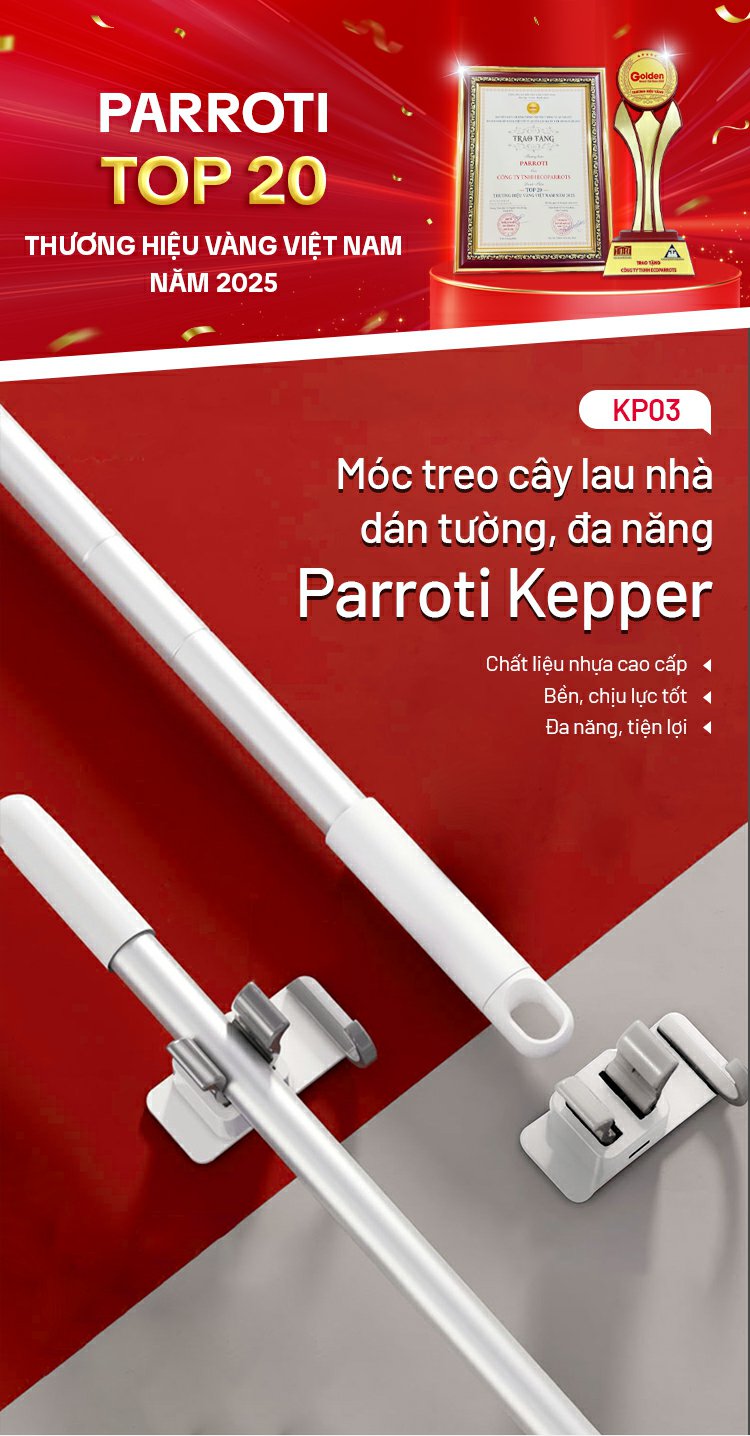 Móc treo cây lau nhà dán tường 2 trong 1 - Parroti Keeper KP03