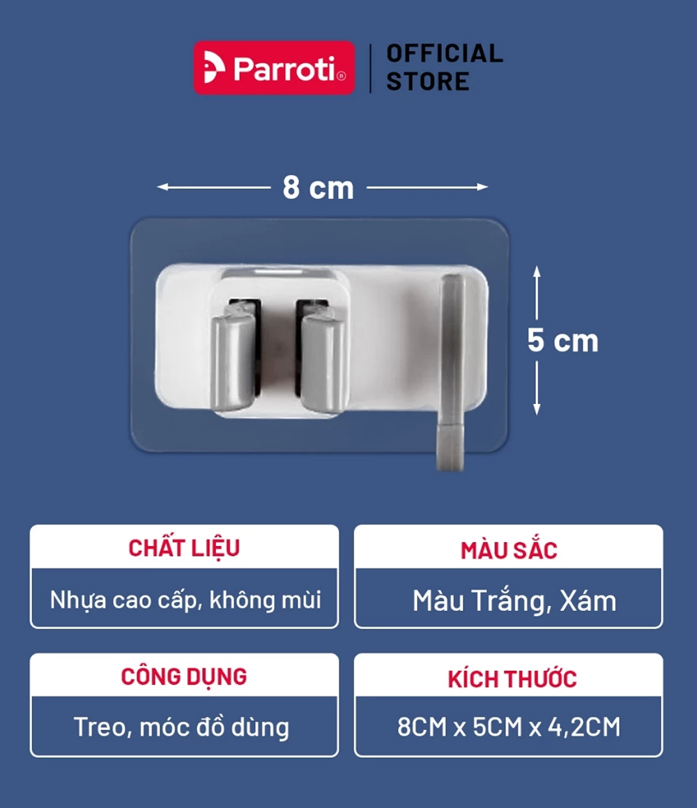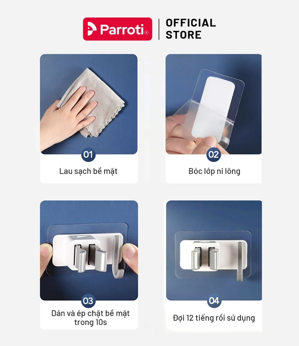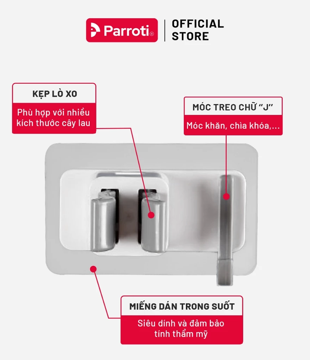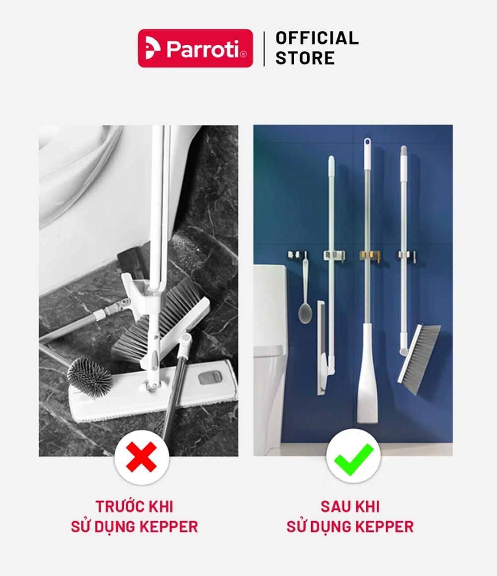 Móc treo cây lau nhà dán tường 2 trong 1 - Parroti Keeper KP03