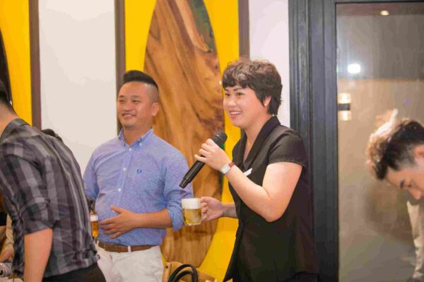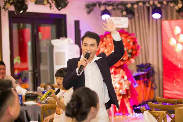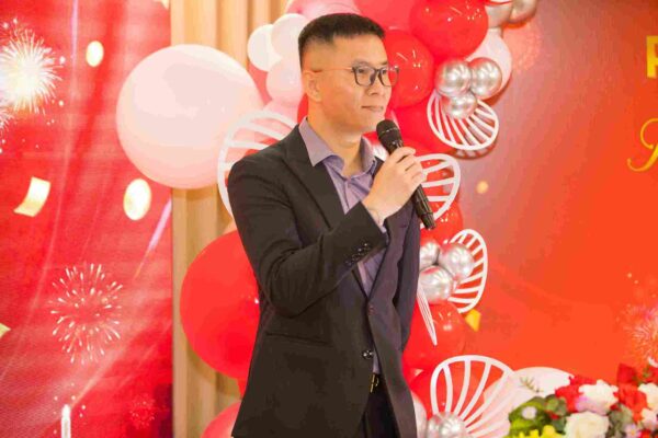 Ảnh: Đại diện công ty – Giám đốc Trần Quốc Bảo phát biểu trước đêm tiệc (Nguồn: Parroti.vn)