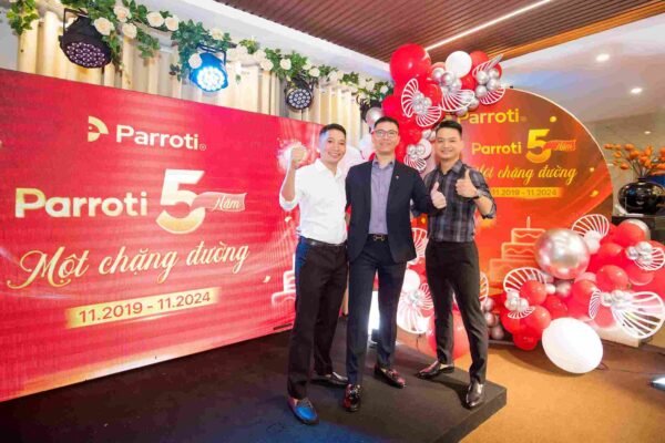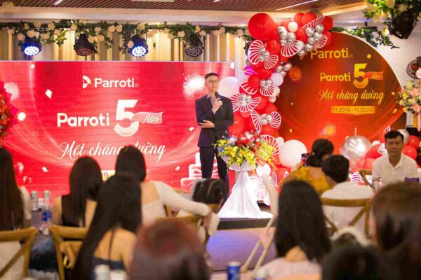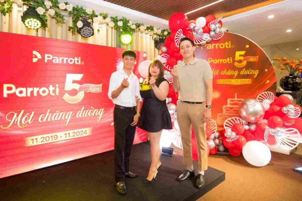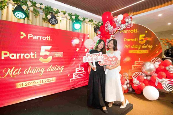 Ngày 16 tháng 11 năm 2024, Parroti đã tưng bừng tổ chức gala kỷ niệm 5 năm thành lập với chủ đề “5 Năm Một Chặng Đường“, một sự kiện trọng đại đánh dấu cột mốc phát triển không ngừng nghỉ của công ty. Buổi tiệc là dịp để toàn thể Parroti-ers cùng nhau nhìn lại những khoảnh khắc đáng nhớ, vượt qua mọi thử thách để đạt được những bước tiến vững chắc.