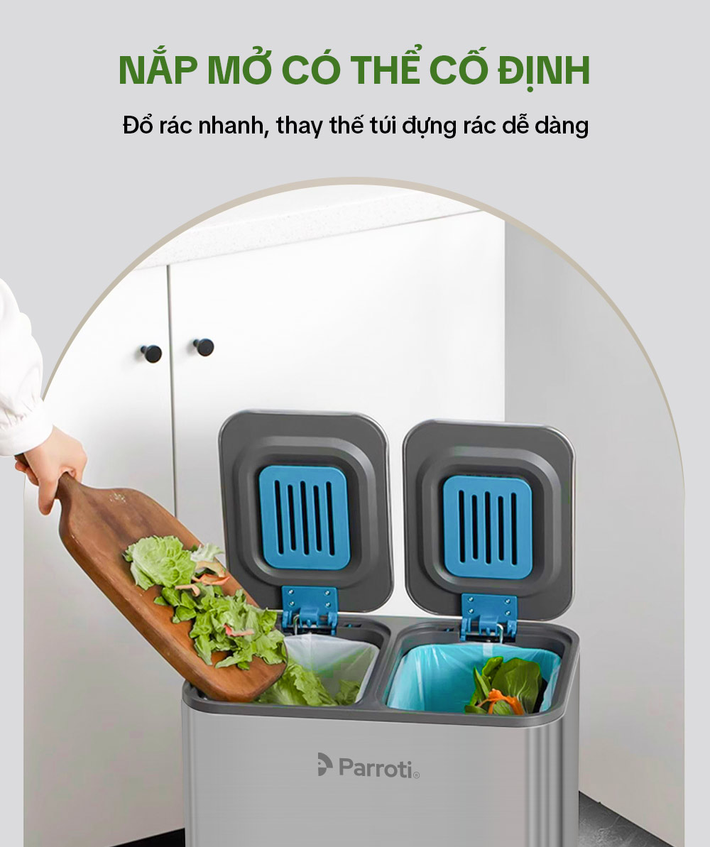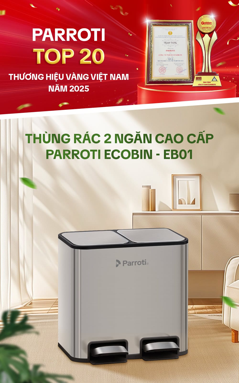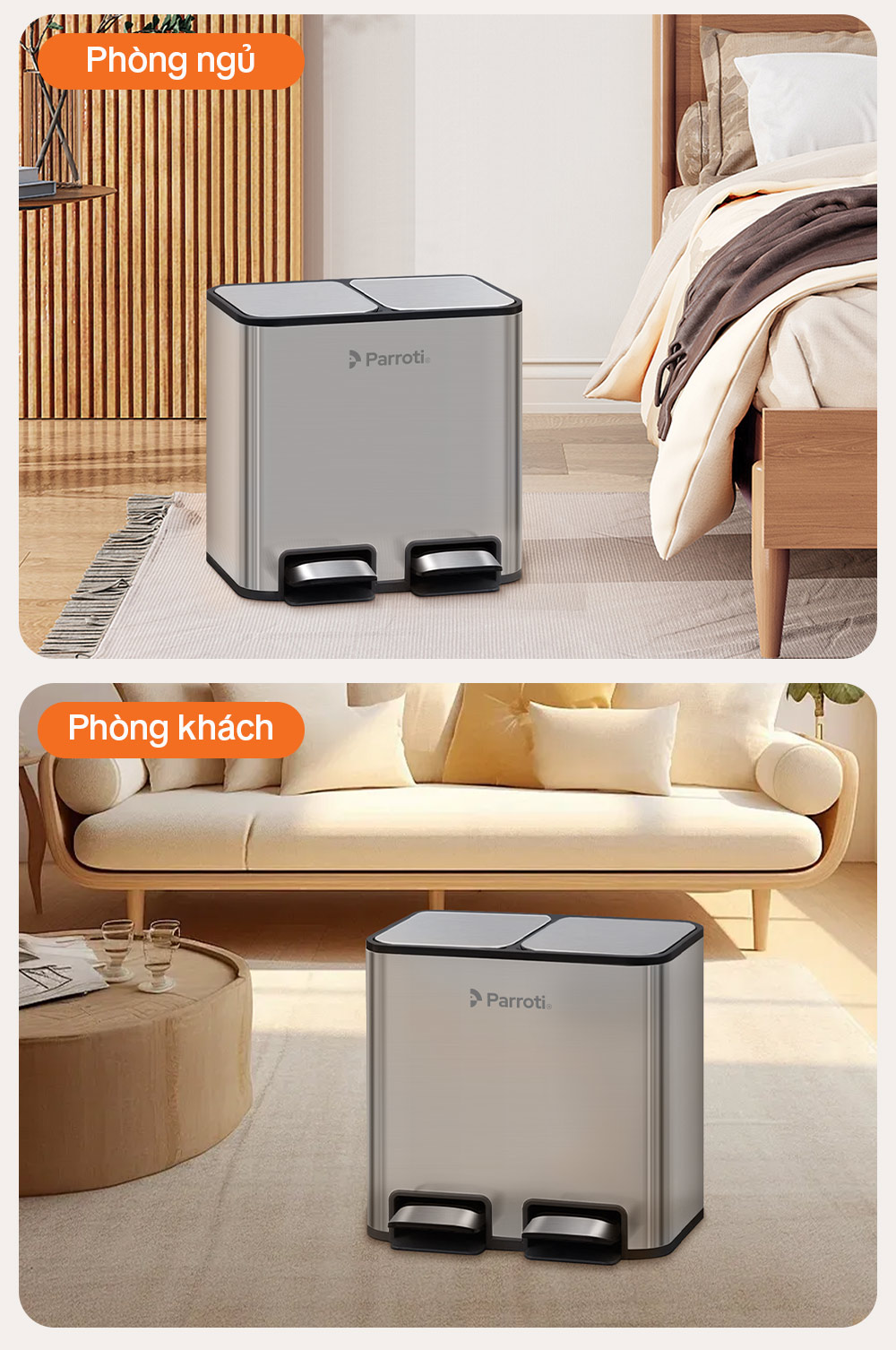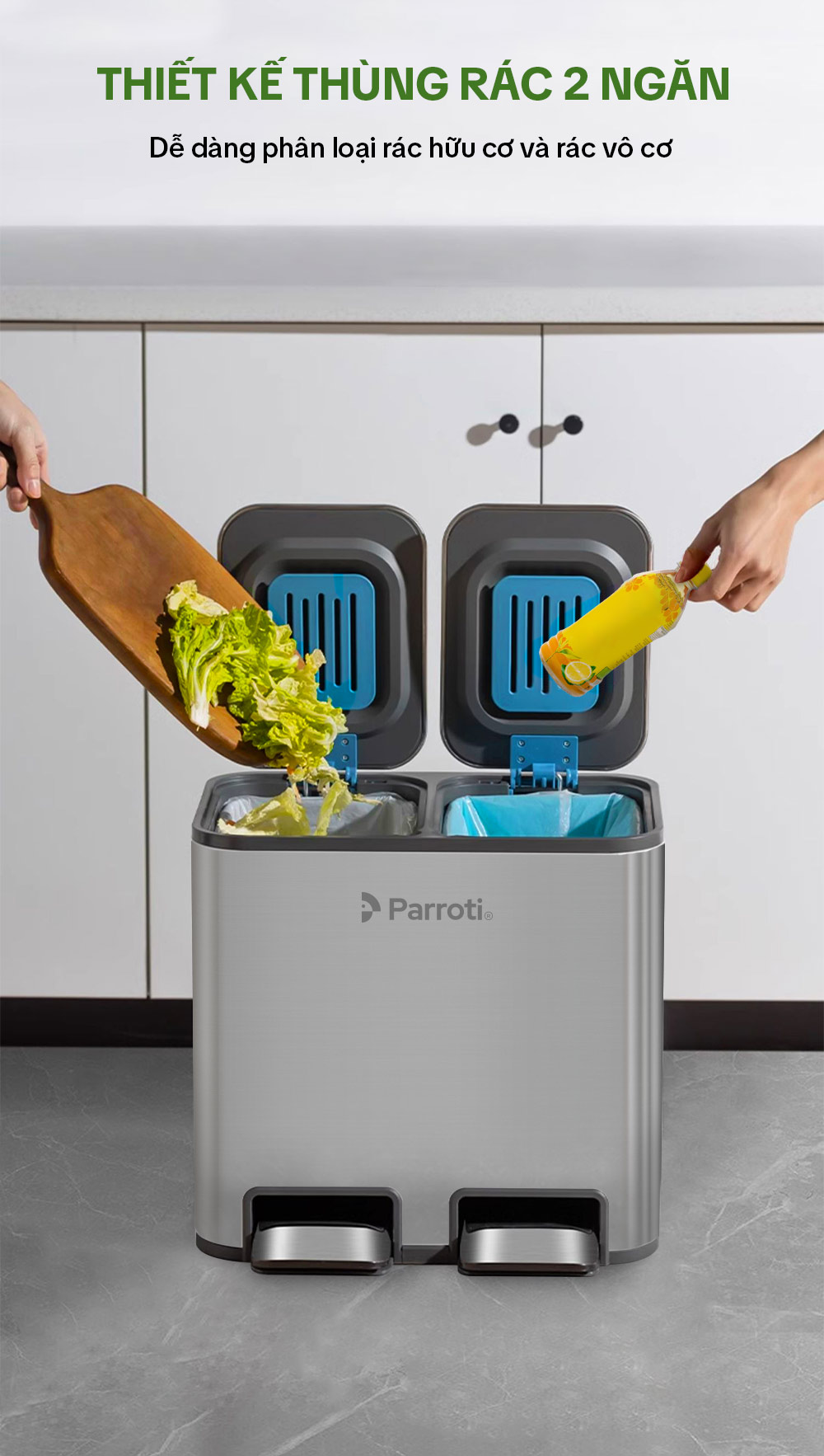 Thùng rác đôi Inox, đạp hai ngăn có nắp đậy Parroti EcoBin - EB01