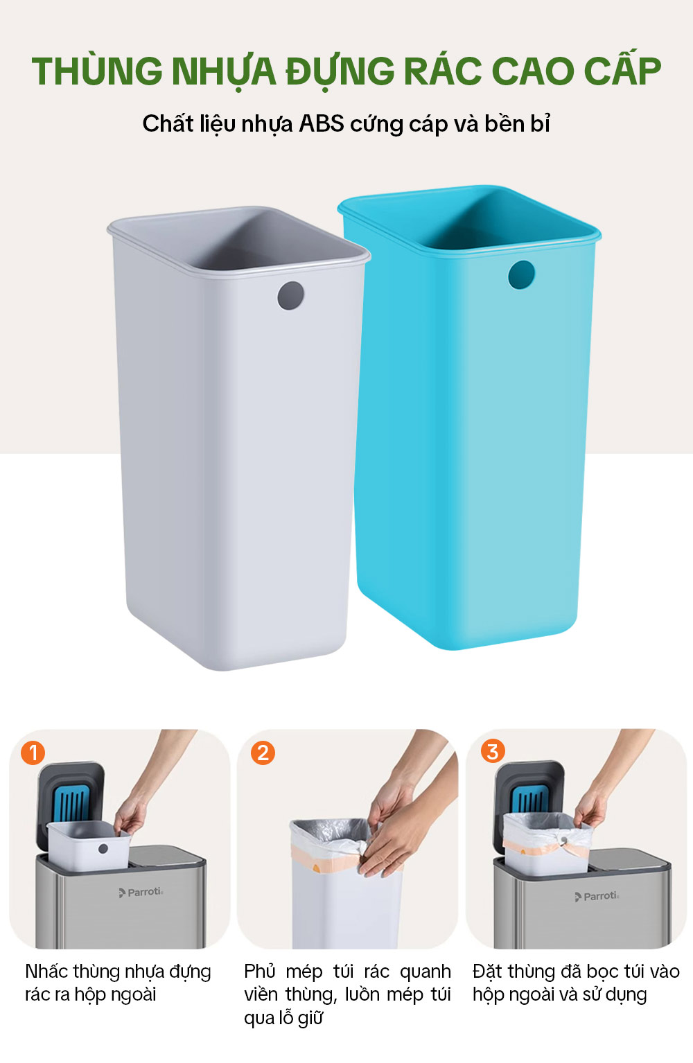 – Nắp thùng rác có khay để túi thơm hạn chế mùi thùng rác