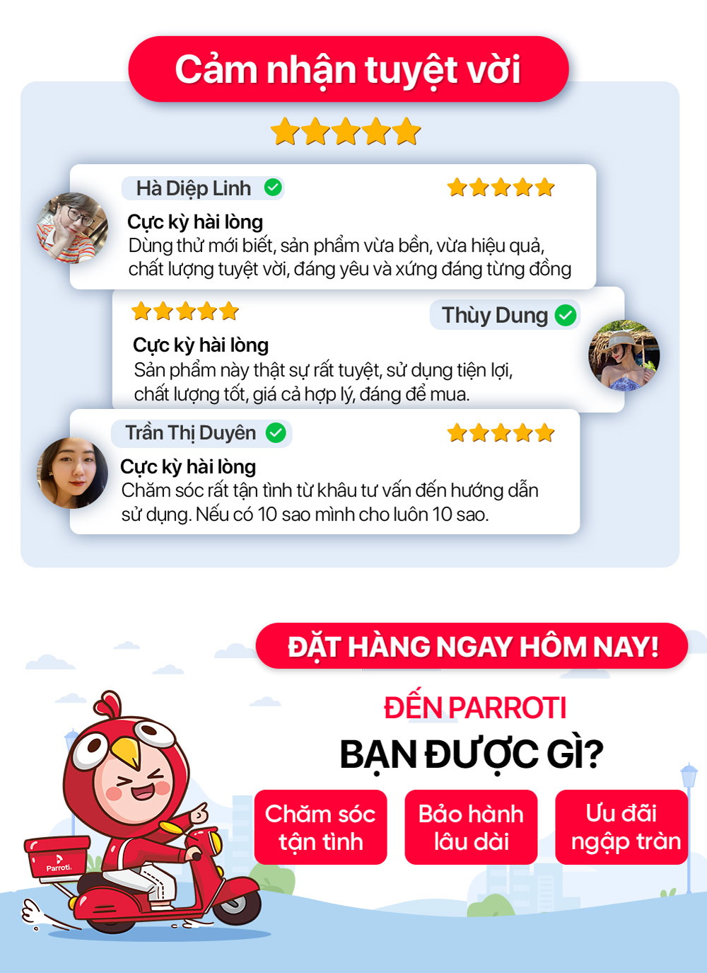 Parroti đảm bảo sản phẩm đúng như mô tả và hình ảnh