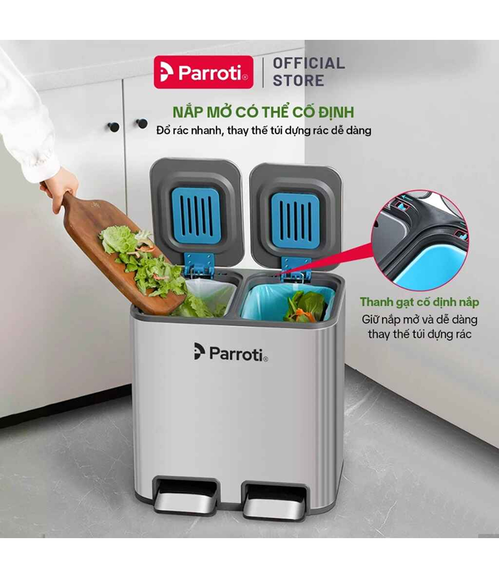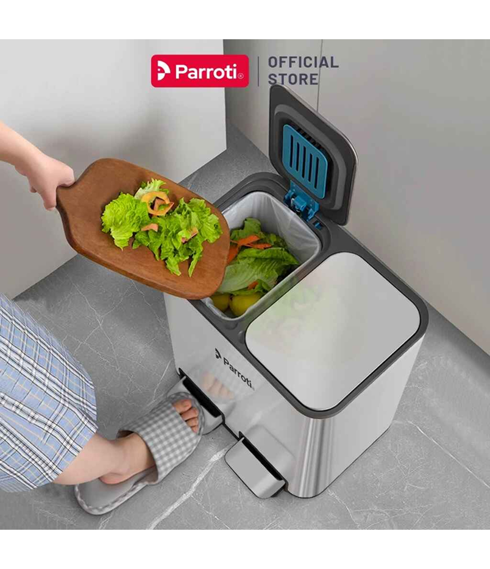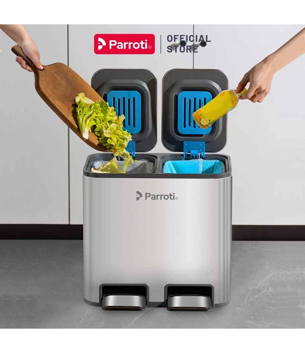 Thùng rác đôi Inox, đạp hai ngăn có nắp đậy Parroti EcoBin - EB01