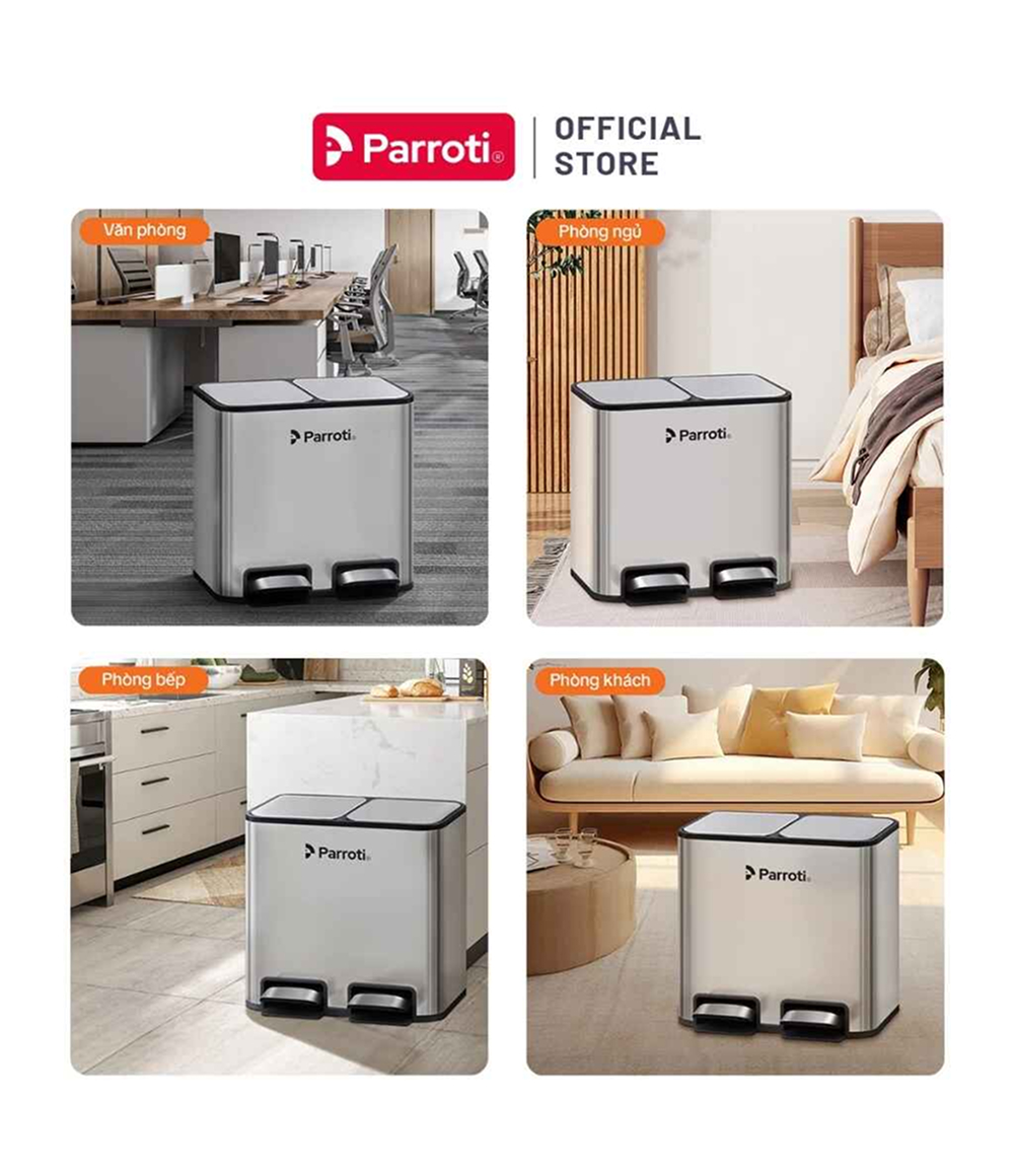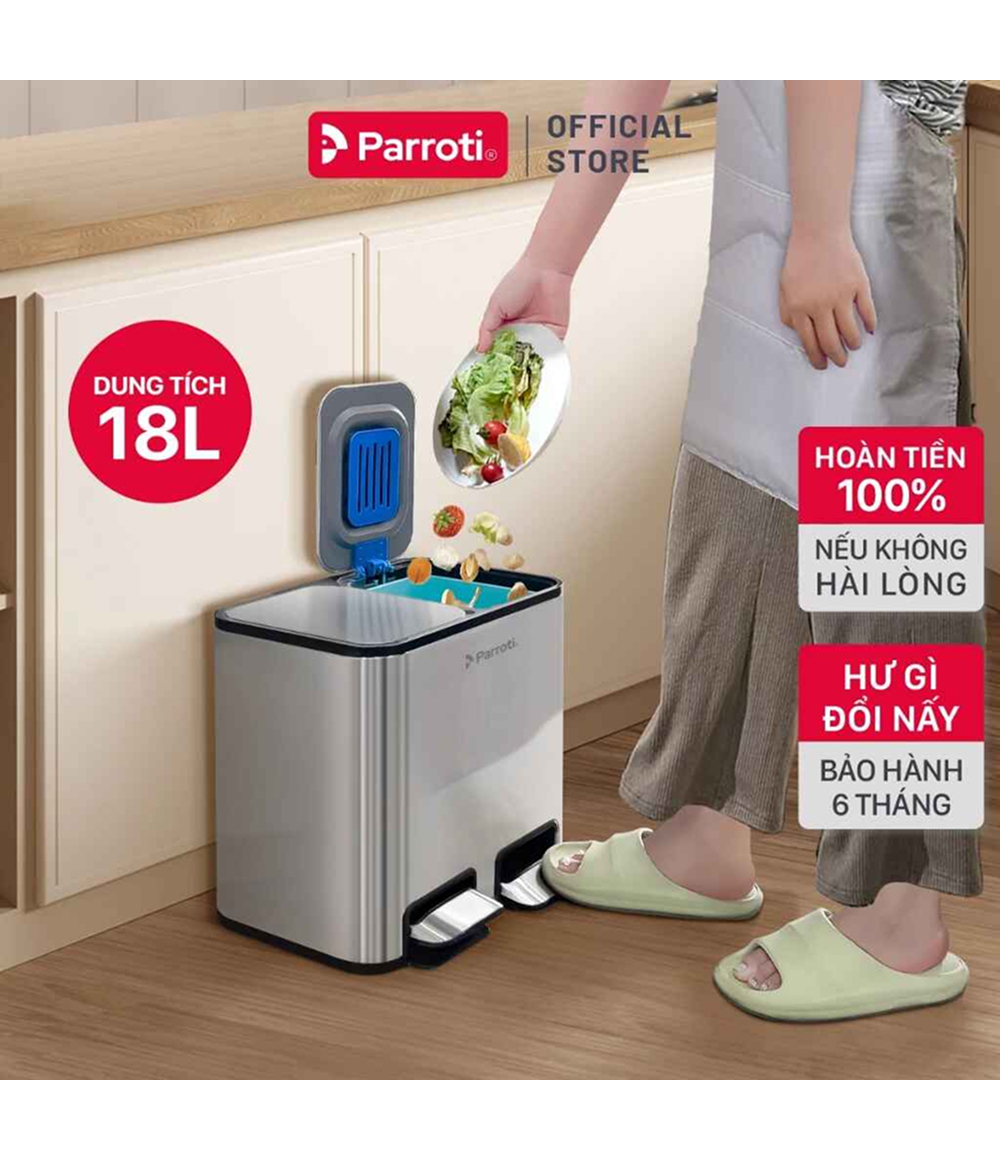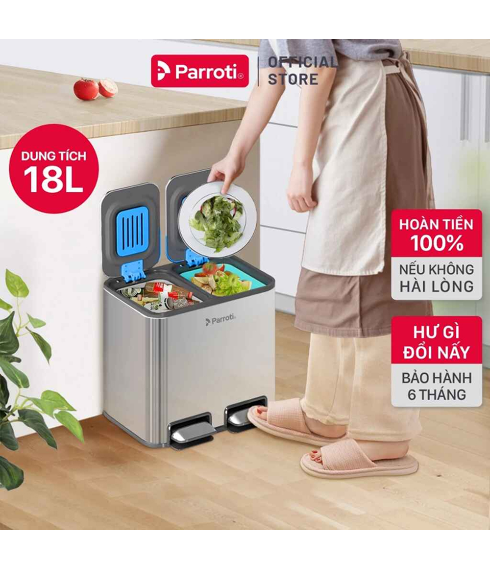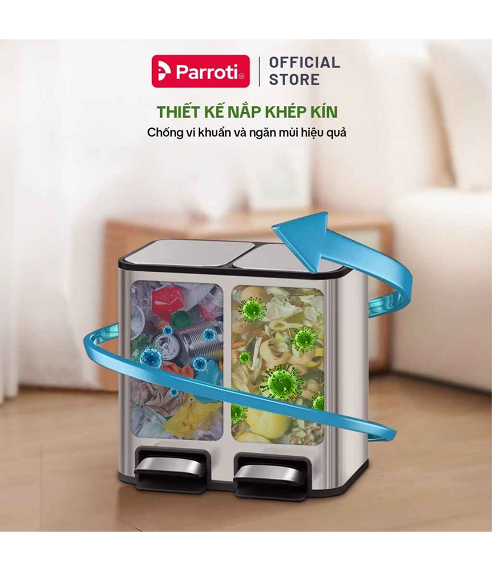 Thùng rác đôi Inox, đạp hai ngăn có nắp đậy Parroti EcoBin - EB01