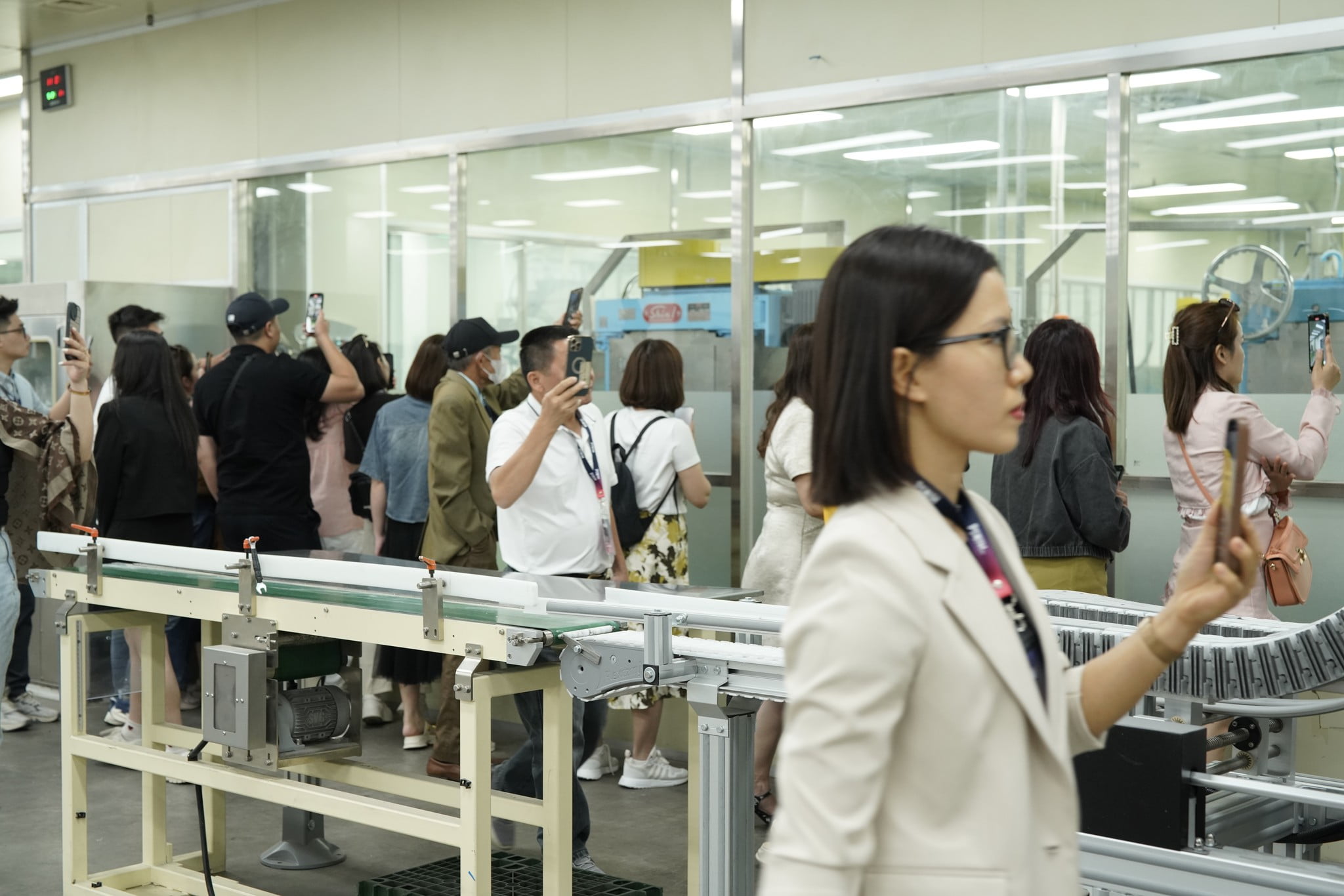 Lần đầu tiên, đoàn công tác được trực tiếp theo dõi dây chuyền sản xuất của một trong những thương hiệu sữa công thức hàng đầu thế giới