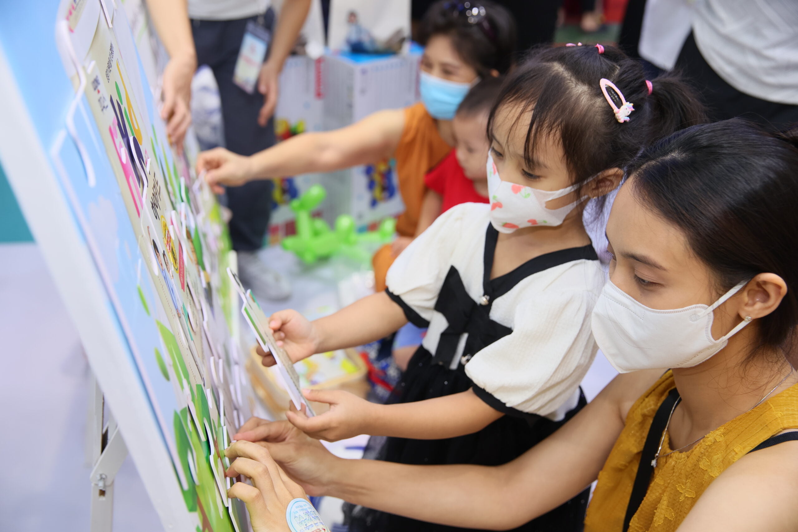 Trẻ em theo mẹ đến triển lãm cũng có thể tham gia các trò chơi hoạt náo thú vị và nhận được hàng ngàn quà tặng từ Hikid. Điều này không chỉ tạo nên một không gian mua sắm thú vị mà còn giúp các bậc phụ huynh hiểu rõ hơn về sản phẩm cũng như dịch vụ của Phương Linh muốn mang đến cho khách hàng.