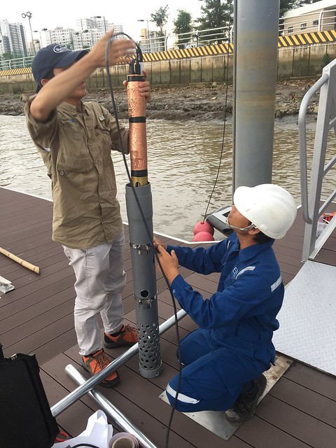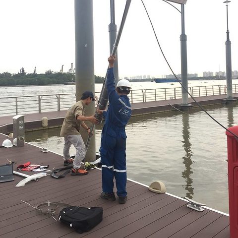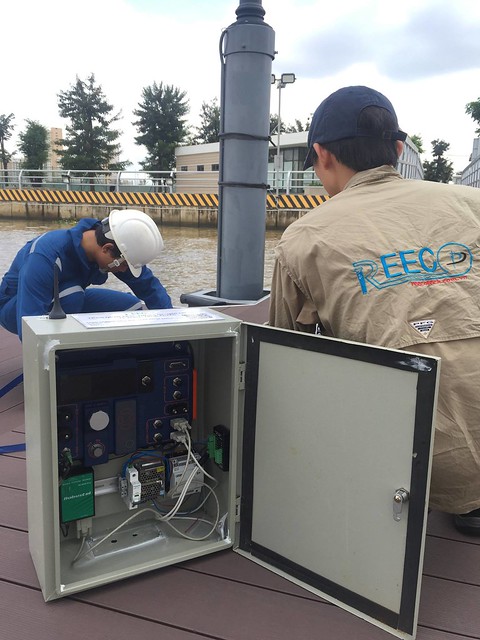Hình 3: Kỹ sư REECO tiến hành lắp đặt hệ thống trạm quan trắc tự động tại sông Sài Gòn