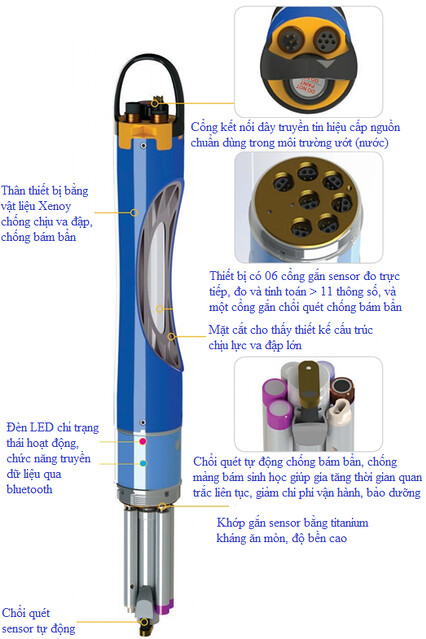 - Thiết bị tích hợp chổi quét tự động làm sạch cho tất cả các sensor đo