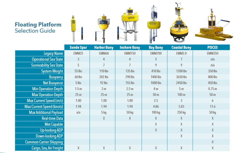 Các hệ thống phao tùy chọn lắp đặt tùy theo điều kiện khí tượng, thủy hải văn tại địa điểm quan trắc.