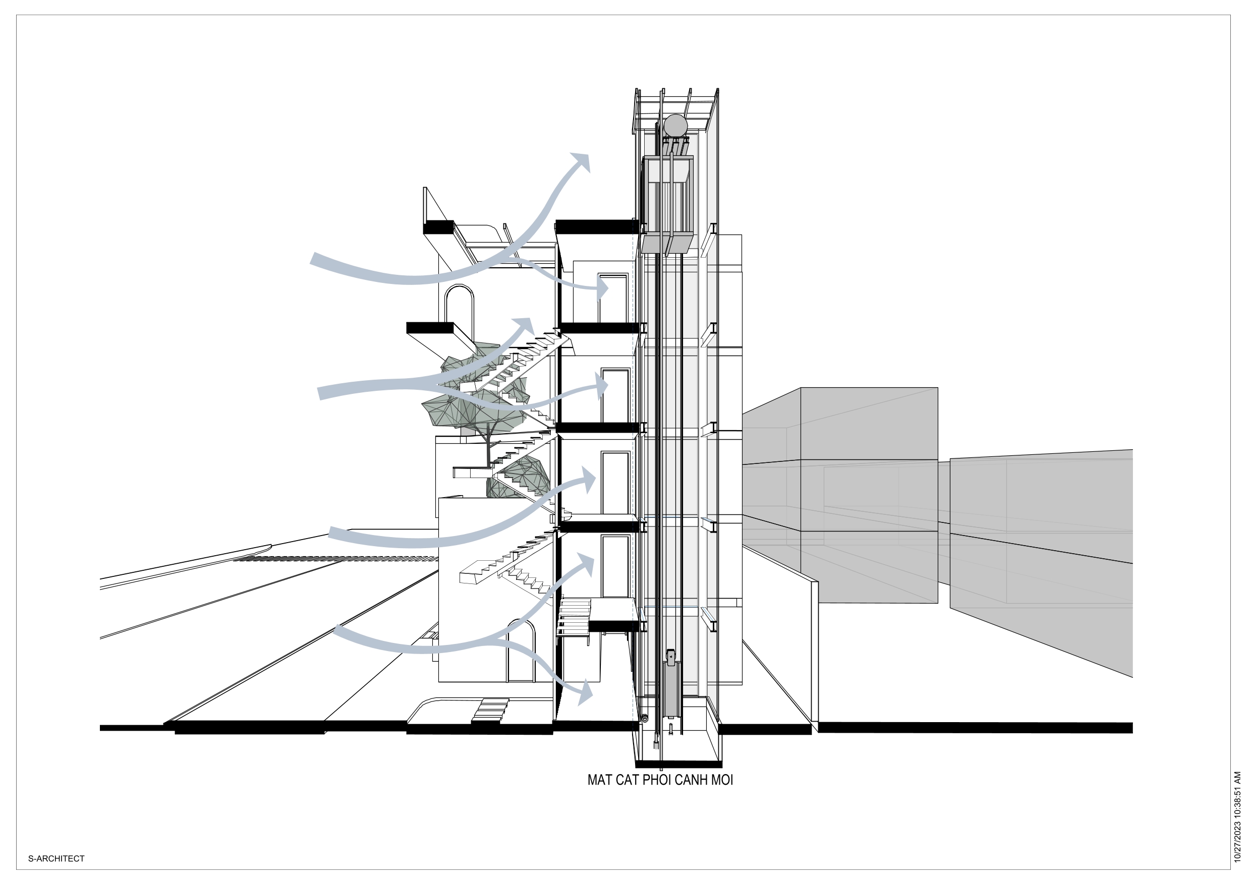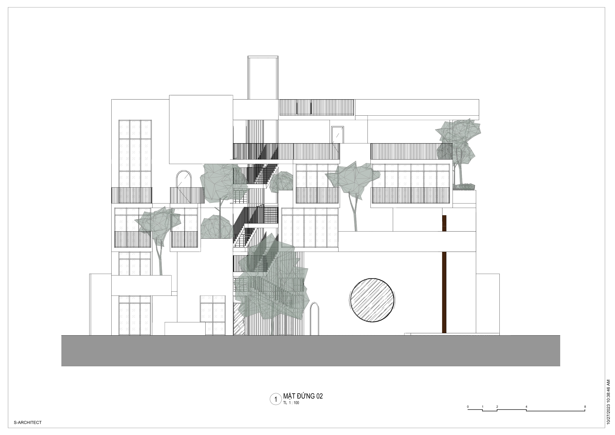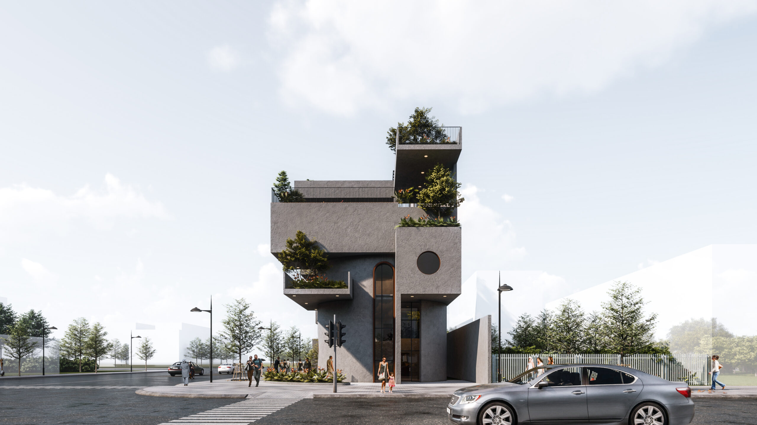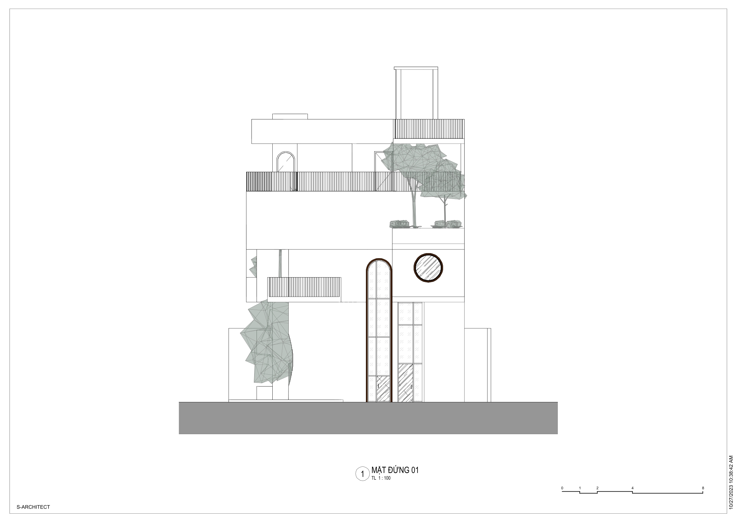 Công trình đặt tại Sơn Trà thành phố Đà Nẵng, kết hợp cùng những mong muốn của gia chủ về một không gian sống tràn ngập cây xanh,chúng tôi đưa ra ý tưởng chính trong thiết kế là kết hợp 3 yếu tố: không gian sống, khoảng xanh và ánh sáng. Các yếu tố này luôn hiện diện xen kẽ nhau trong từng ngóc ngách của công trình từ hình thức kiến trúc đến các không gian nội thất. Các không gian phụ, cây xanh bao bọc các không gian bên trong là “lớp vỏ” tốt để tránh tiếng ồn và điều hòa khí hậu cho ngôi nhà.
