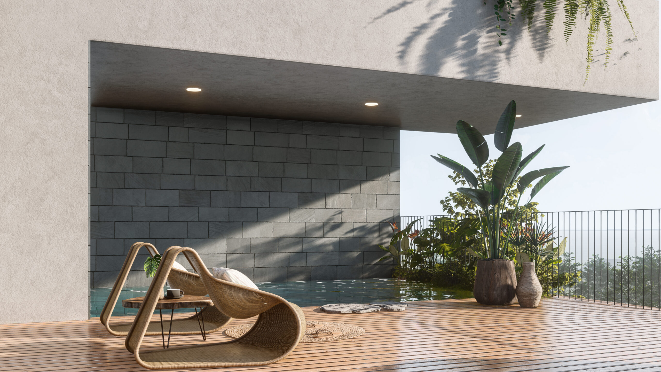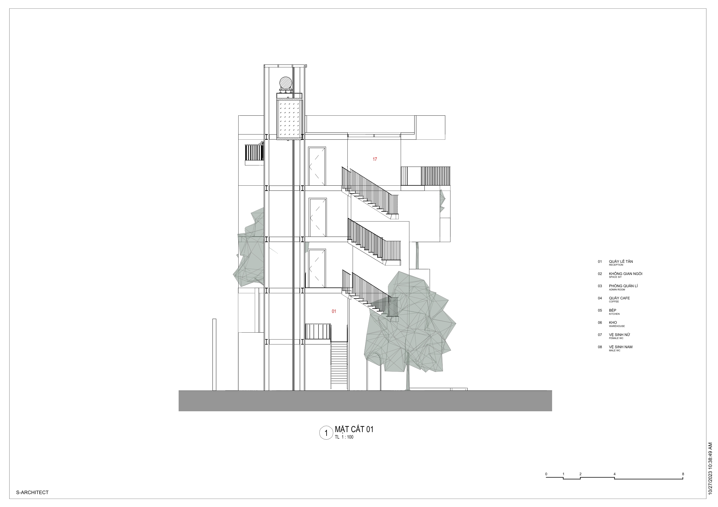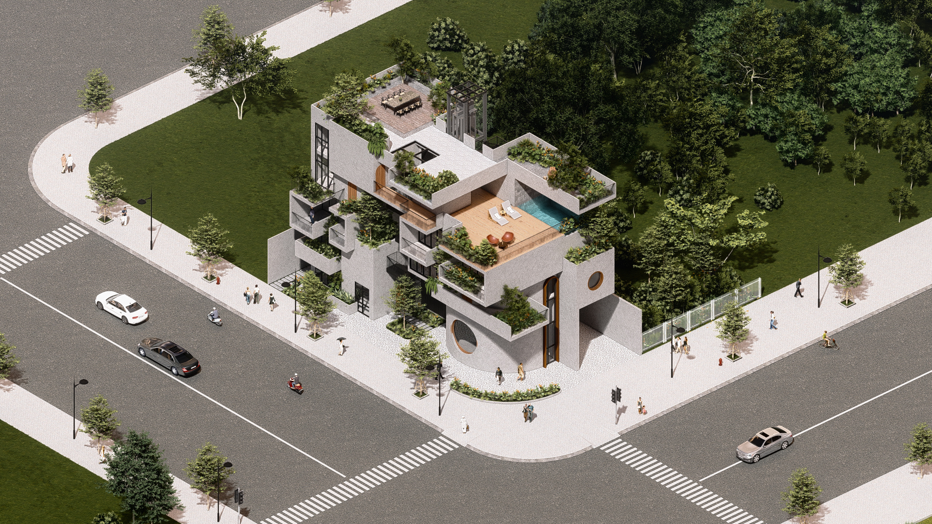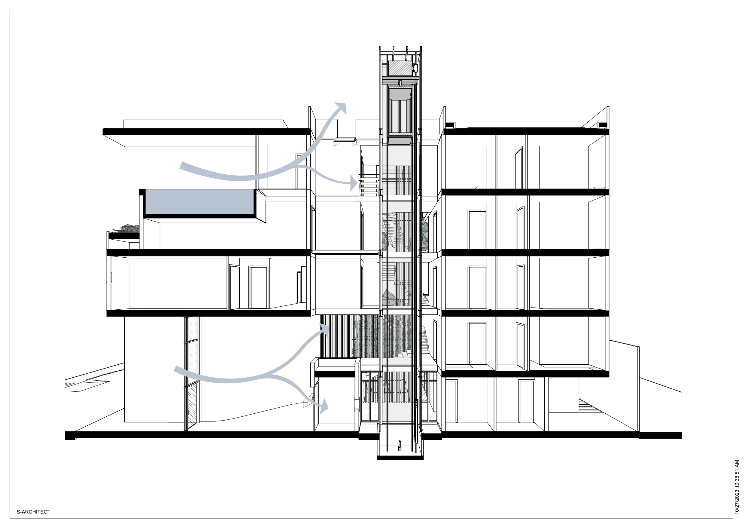 Công trình đặt tại Sơn Trà thành phố Đà Nẵng, kết hợp cùng những mong muốn của gia chủ về một không gian sống tràn ngập cây xanh,chúng tôi đưa ra ý tưởng chính trong thiết kế là kết hợp 3 yếu tố: không gian sống, khoảng xanh và ánh sáng. Các yếu tố này luôn hiện diện xen kẽ nhau trong từng ngóc ngách của công trình từ hình thức kiến trúc đến các không gian nội thất. Các không gian phụ, cây xanh bao bọc các không gian bên trong là “lớp vỏ” tốt để tránh tiếng ồn và điều hòa khí hậu cho ngôi nhà.