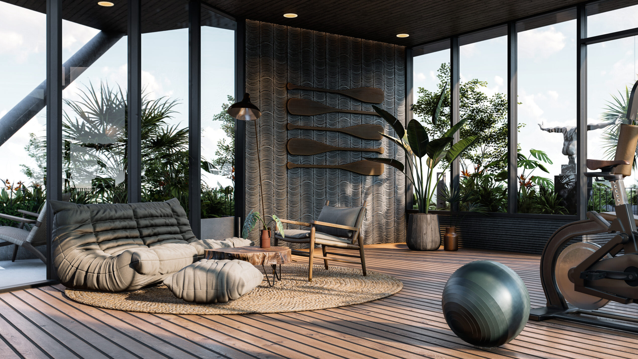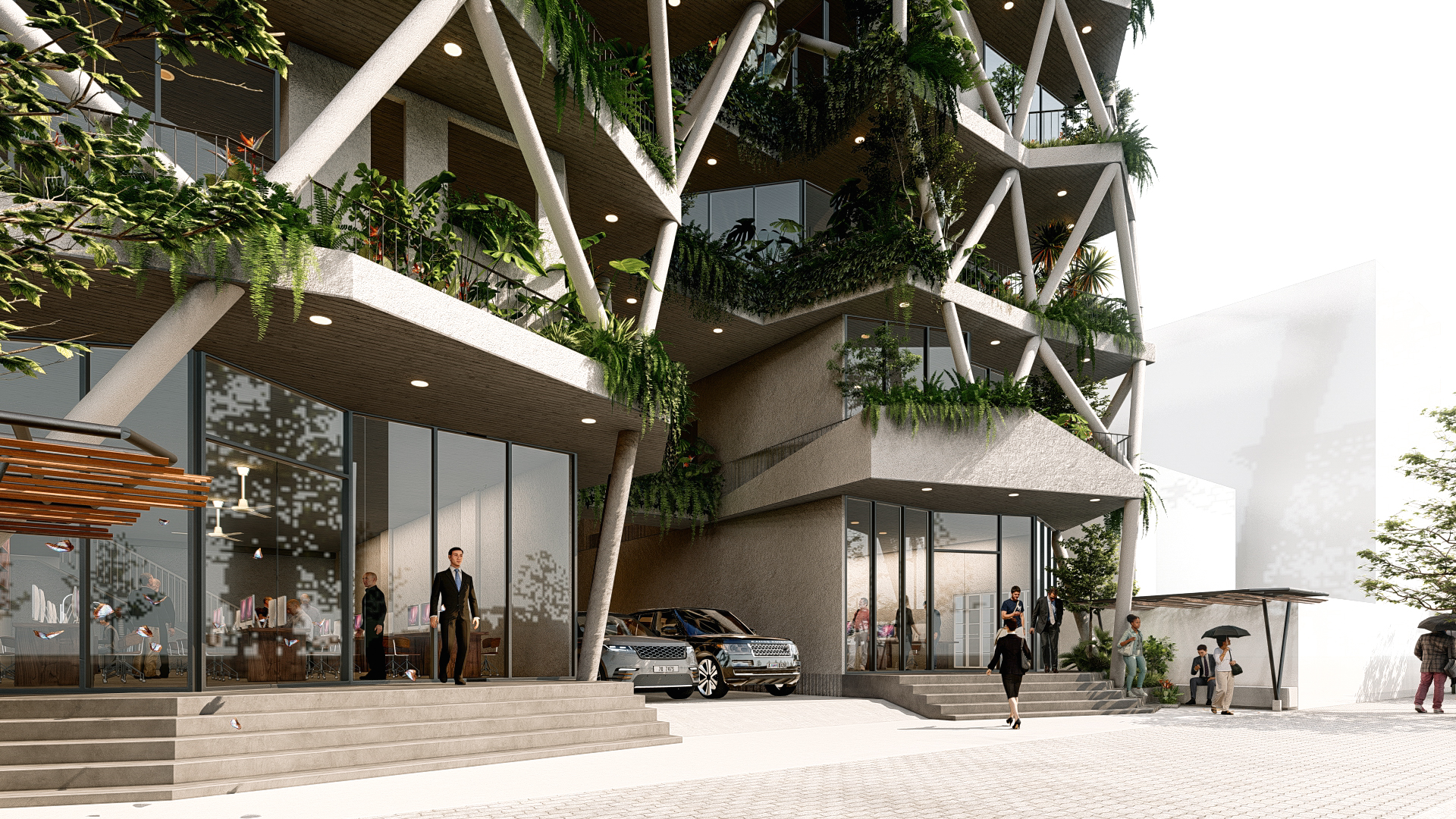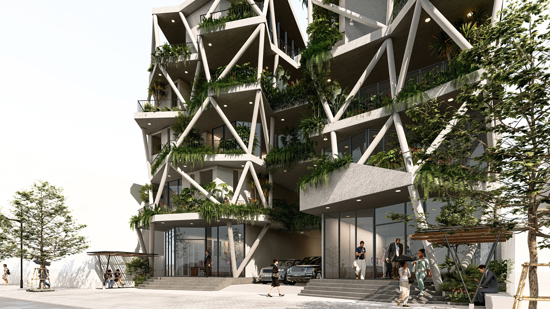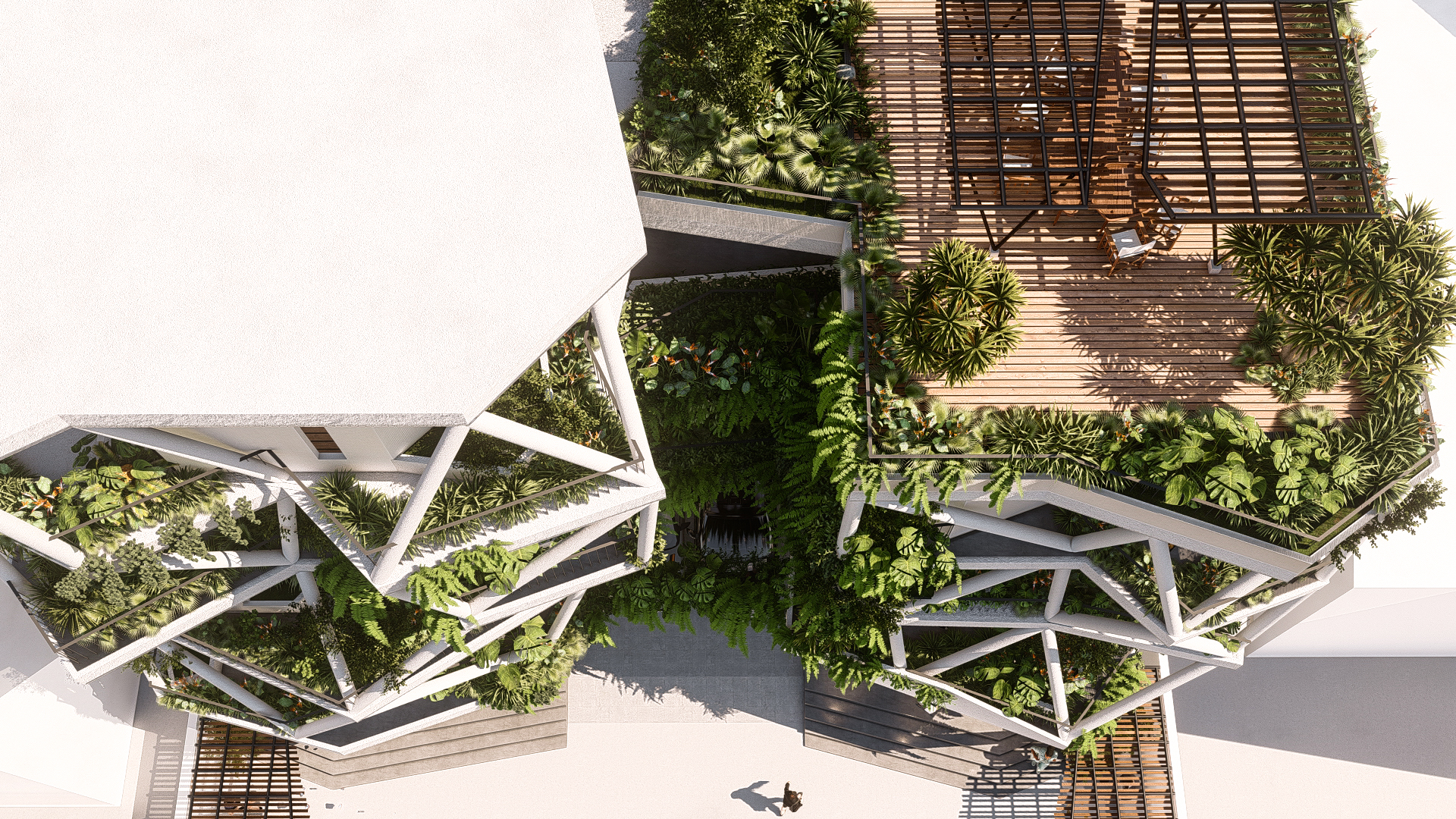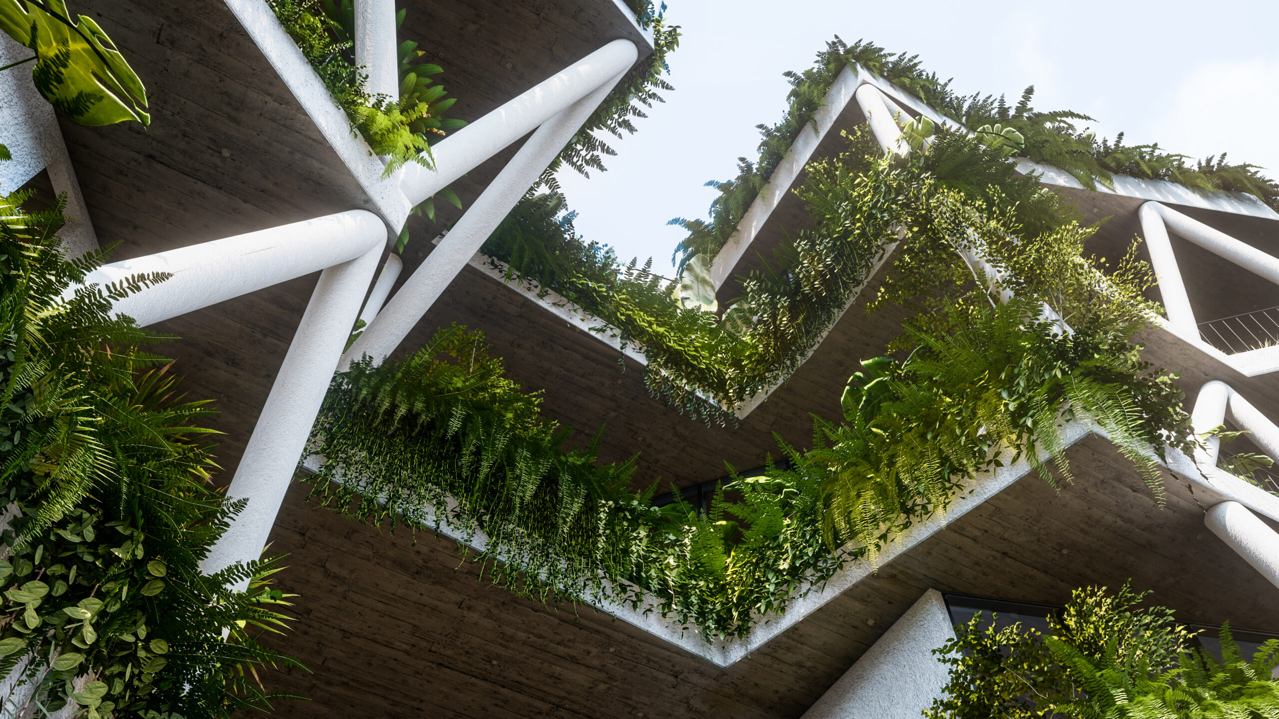 Bối cảnh công trình đặt tại một thành phố biển ở Việt Nam, kết hợp cùng những mong muốn của gia chủ về một không gian sống tràn ngập cây xanh,chúng tôi đưa ra ý tưởng chính trong thiết kế là kết hợp 3 yếu tố: không gian sống, khoảng xanh và ánh sáng. Các yếu tố này luôn hiện diện xen kẽ nhau trong từng ngóc ngách của công trình từ hình thức kiến trúc đến các không gian nội thất. Các không gian phụ, hồ cá hay cây xanh bao bọc các không gian bên trong là “lớp vỏ” tốt để tránh tiếng ồn và điều hòa khí hậu cho ngôi nhà.