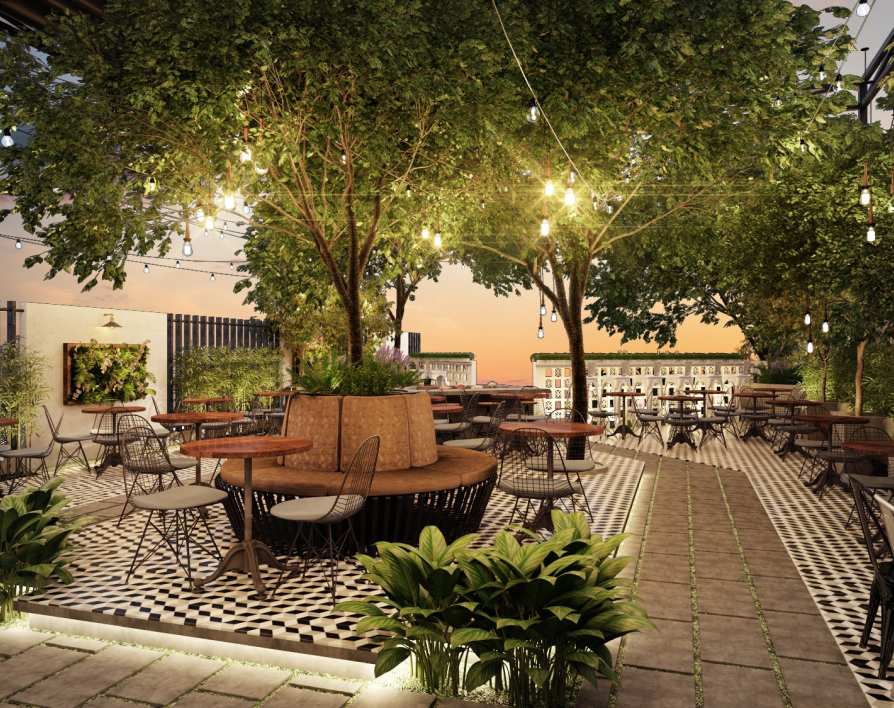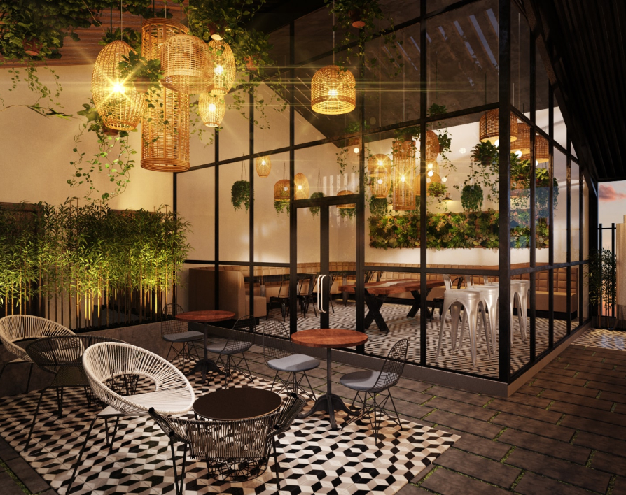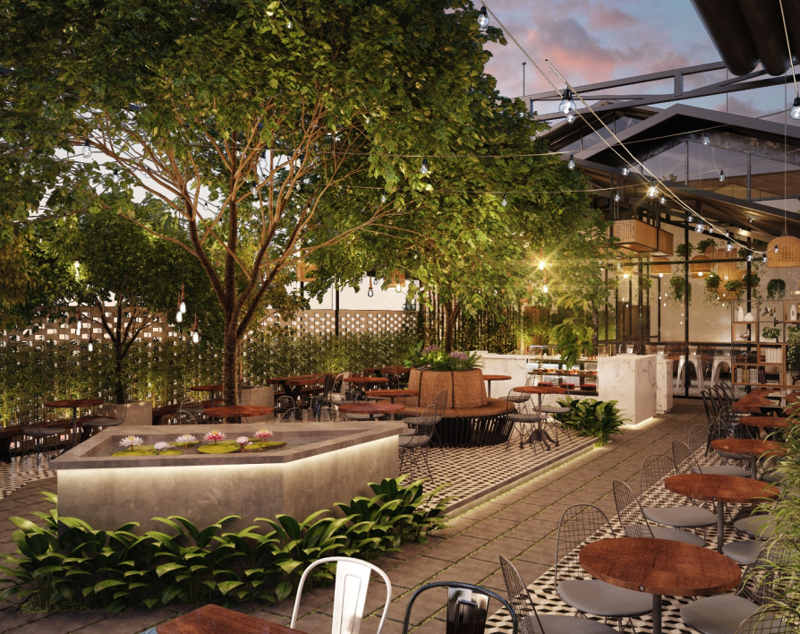 Lấy ý tưởng từ sân vườn, S Architects đã tạo nên không gian được lồng ghép các yếu tố từ tự nhiên như Kim, Mộc, Thủy, Hỏa và Thổ nhằm tạo cho khách hàng cảm giác thoải mái khi đến với An Coffee.