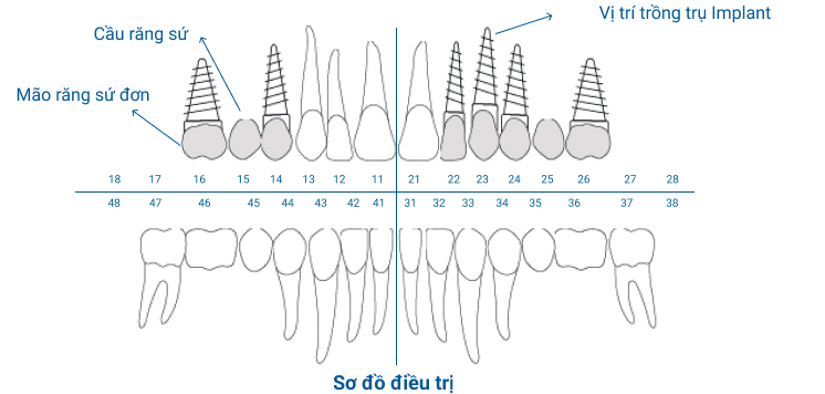 Sau đó lập sơ đồ răng riêng biệt cho bệnh nhân, từ đó xác định vấn đề và lên phương án điều trị.