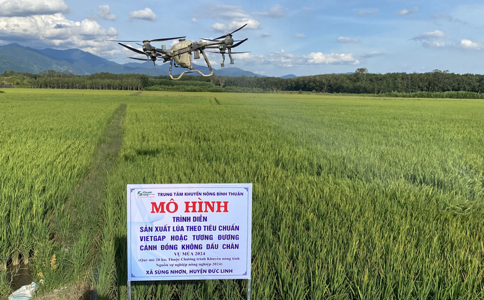 Theo ông Ngô Thái Sơn, Phó Giám đốc phụ trách Trung tâm Khuyến nông Bình Thuận, năm 2024, Trung tâm tổ chức hơn 90 lớp (mỗi lớp 30 người) tập huấn về kỹ thuật sản xuất lúa theo tiêu chuẩn bền vững SRP và áp dụng nhật ký sản xuất điện tử để truy xuất nguồn gốc tại 5 huyện gồm Đức Linh, Tánh Linh, Hàm Thuận Bắc và Bắc Bình. Đồng thời xây dựng mô hình trình diễn sản xuất lúa theo tiêu chuẩn VietGAP hoặc tương đương tại các “cánh đồng không dấu chân” với quy mô 160ha và mô hình trình diễn áp dụng một số giống lúa mới chất lượng cao như Đài thơm 8, ST25, Bắc Thịnh… với quy mô hơn 50ha.