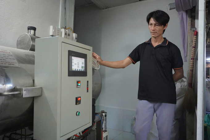 Theo anh Hùng, tùy theo từng loại nấm sẽ có kỹ thuật trồng khác nhau, trong đó, để nấm phát triển tốt thì phôi nấm có vai trò rất quan trọng. Đối với nấm sò, nguyên liệu chính là mùn cưa cao su được nhập từ Gia Lai, sau đó ủ ít nhất một tháng để hoai và loại bỏ hết chất độc rồi trộn đều với cám bắp, cám gạo theo tỷ lệ 45kg cám bắp, 45kg cám gạo, 1 tấn mùn cưa. Hỗn hợp nguyên liệu này sẽ được chia ra đóng vào bịch phôi tiêu chuẩn 1,2kg/bịch.