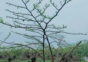 Tại vườn của gia đình ông Bùi Duy Dũng ở tổ dân phố Đồng Tiến 2 (nguyên Bí thư Đảng ủy phường Bàng La), hình ảnh đập vào mắt chúng tôi chính là những cây táo trơ trọi đang lún phún những lộc non, còn phần gốc đã được cắt tỉa và vun xới cẩn thận.
