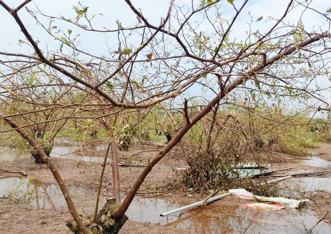 Trước thời điểm bão về, cả vườn cây trĩu quả, chuẩn bị được thu hoạch cho vụ táo trái vụ. Tuy vậy, chỉ sau 1 buổi chiều, toàn bộ hơn 300 gốc táo đều bị thiệt hại, ngoài một số cây bật gốc hoặc gãy cành, toàn bộ hoa và quả đều “bay” sạch. Ước tính số tiền thiệt hại trong vụ táo trái vụ và vụ táo Tết Nguyên đán sắp tới xấp xỉ gần 1 tỷ đồng.