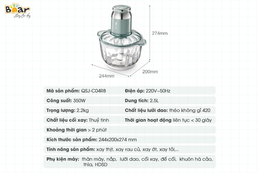 Máy xay thực phẩm Bear QSJ-C04R8S