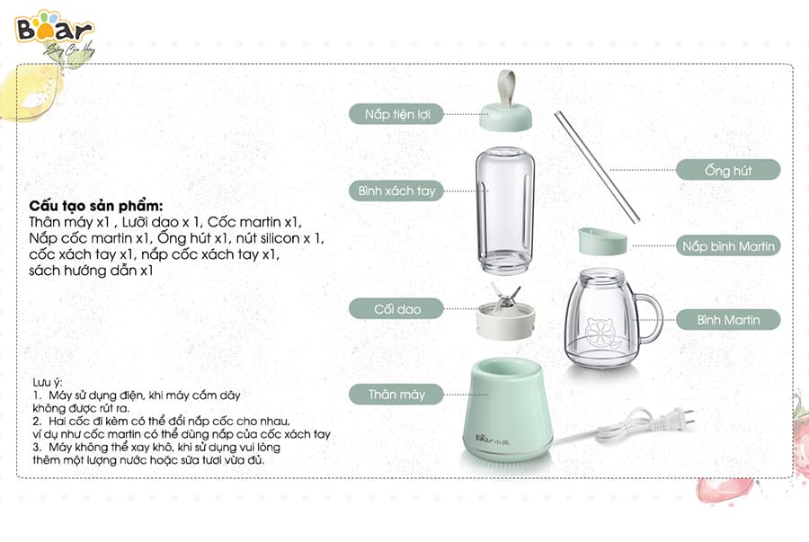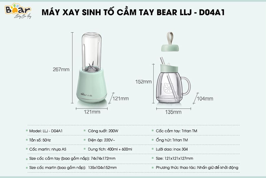 Máy xay sinh tố hoa quả cầm tay Bear LLJ-D04A1