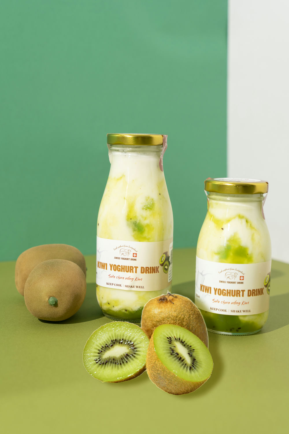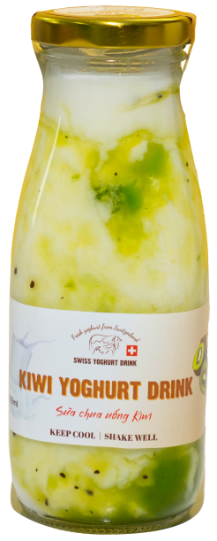 Swiss Yoghurt Kiwi flavor – This drinking yoghurt provides 2g of protein and 3.6g of fat /100 ml. In addition, the product also provides other necessary nutrients such as vitamins, fiber, and calcium that are beneficial for health.