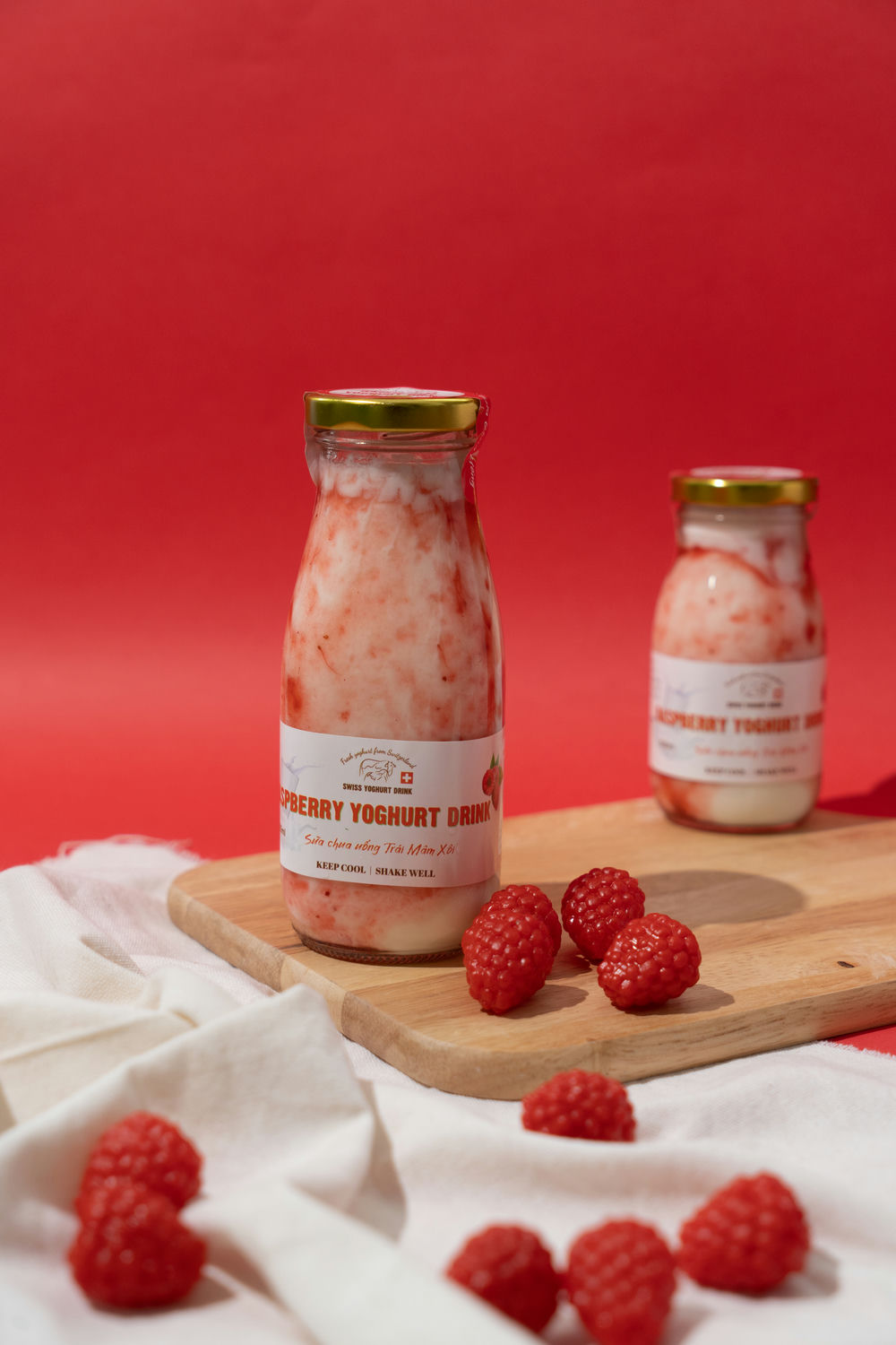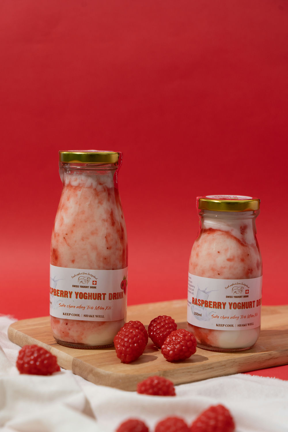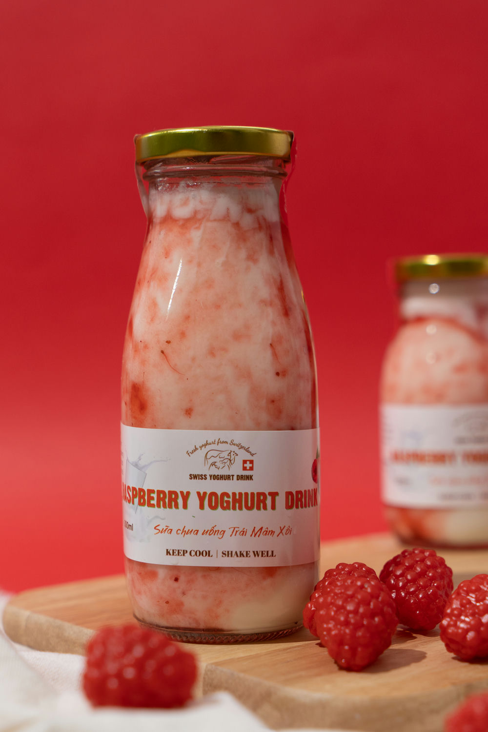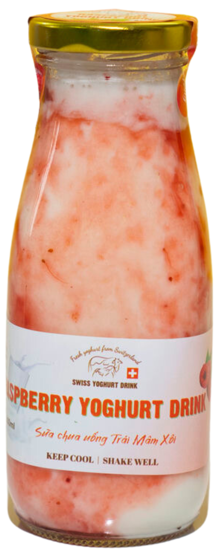 Swiss Yoghurt Raspberry flavor – This drinking yoghurt provides 2g of protein and 3.6g of fat /100 ml. In addition, the product also provides other necessary nutrients such as vitamins, fiber, and calcium that are beneficial for health.