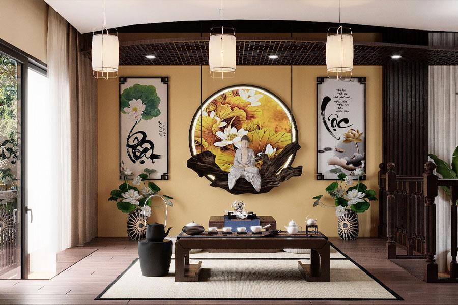 Phong cách thiết kế nội thất Indochine thường ưa chuộng trang trí các loại tượng truyền thống hay phù điêu chúng bao gồm nhưng biểu tượng như