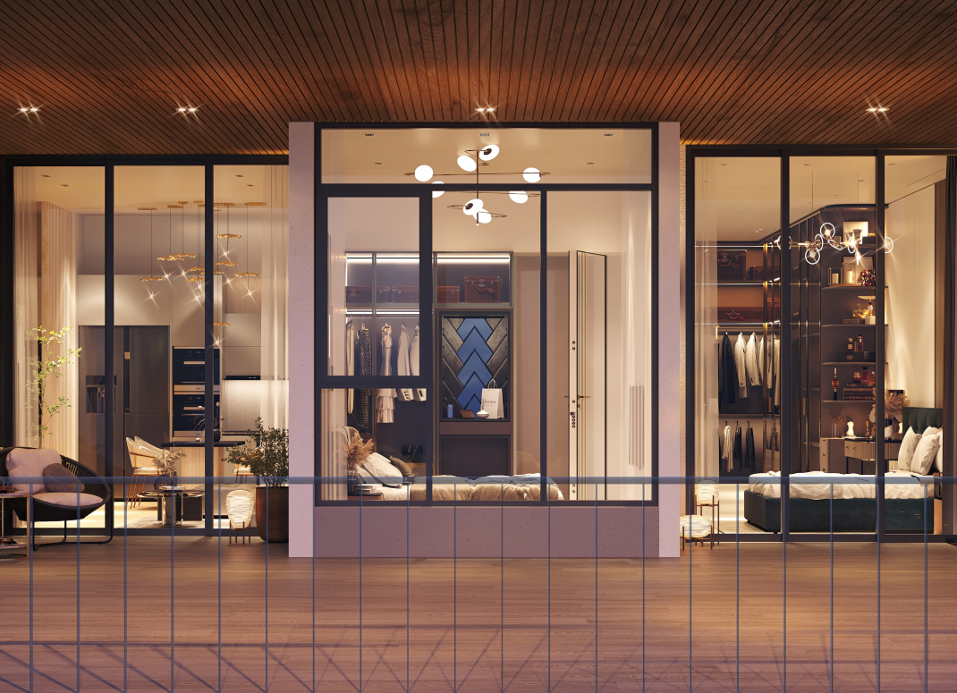 The living room offers a spacious and luxurious area with high ceilings and floor-to-ceiling glass doors, expanding the view to the outside and creating a smooth and airy connection between the indoor and outdoor spaces. With integrated entertainment areas, the living room becomes the ideal place for family and friend gatherings, providing a seamless and comfortable living experience. Some Penthouse apartments are also equipped with premium amenities like private pools, enhancing both the quality of life and offering comfort and convenience.