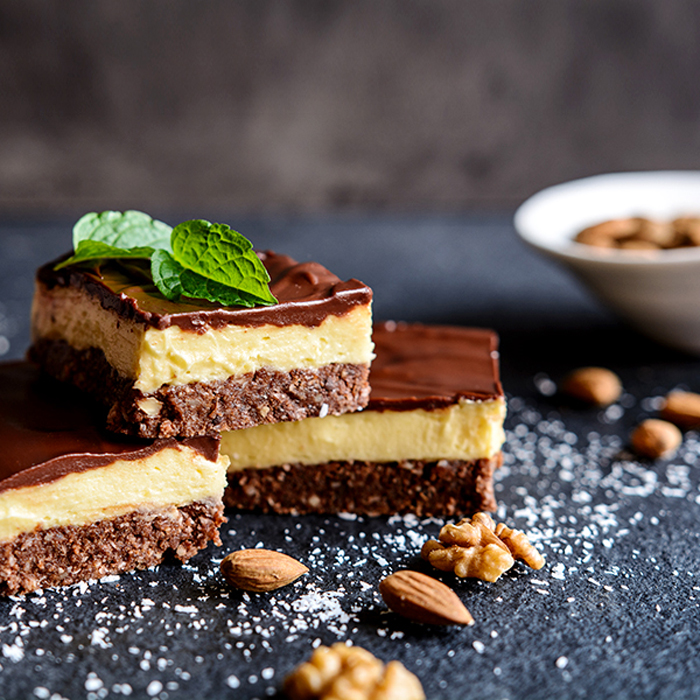 Một trong những món tráng miệng nổi tiếng được cả người dân và du khách khi tới Canada đều thích thú đó là món Nanaimo. Không được làm chín từ lò nướng hay là phải rán và hấp mà món Nanaimo này làm từ hỗn hợp gồm có bơ đông lạnh, hạt cốm, bạc hà, socola tan chảy … tất cả hòa quyện với nhau mang tới hương vị vô cùng độc đáo. Nếu bạn có dịp du lịch Canada mùa thu, nhớ thưởng thức món ăn này nhé.