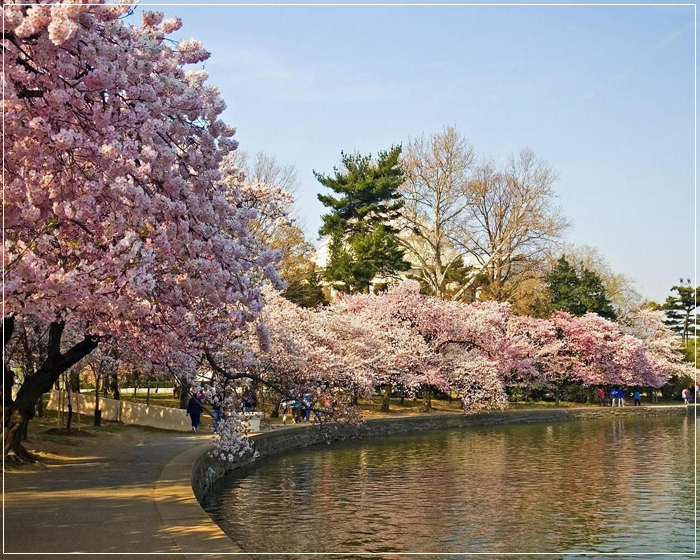Vào mùa xuân, nước Mỹ sẽ được tổ điểm bởi 4000 cây hoa Anh đào với những gam màu trắng, màu hồng vô cùng tinh khiết. Trên những lối đi vương đầy cánh hoa, chắc chắn bạn sẽ thấy tâm hồn mình chợt xao xuyến và cảm thấy vô cùng háo hức khi có thể ghi lại bức hình đẹp nhất.
