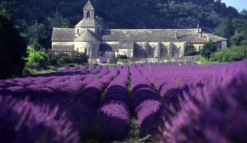 Provence là cách đồng hoa Lavender rộng lớn và nổi tiếng nhất, nổi trội nhất ở cánh đồng hoa Provence có lẽ là vườn hoa Senanque gần Gordes, đến đây bạn có thể nhìn thấy những dải hoa lavender dài nhất thế giới và là giấc mơ của mọi nhiếp ảnh gia. Cánh đồng lavender như một tấm thảm màu tím trải dài như bất tận đến hút tầm mắt. Cả vùng như được ướp hương lavender thơm ngào ngạt. Chính vì quá nổi tiếng mà ở đây thường có rất đông du khách ghé thăm bất kể là sáng hay tối, là đầu tuần hay cuối tuần. Cánh đồng lavender ở Senanque cũng là một nơi tuyệt vời để bạn thưởng thức hoa và chụp những tấm ảnh đẹp. Nơi đây còn có một tu viện từ thời trung cổ được xây dựng từ thế kỷ 12, các thầy tu hiện vẫn sống ở đây và công việc hằng ngày của họ là đọc kinh, làm việc và trồng hoa lavender. Tòa tu viện bằng đá cổ kính nằm giữa cánh đồng hoa tím ngắt là hình ảnh không phải ở đâu bạn cũng có thể thấy được.