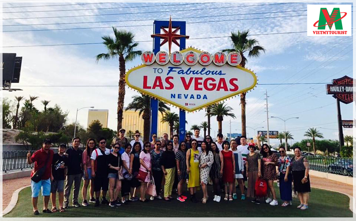 Đoàn khách checkin tại Thiên đường du lịch Las Vegas
